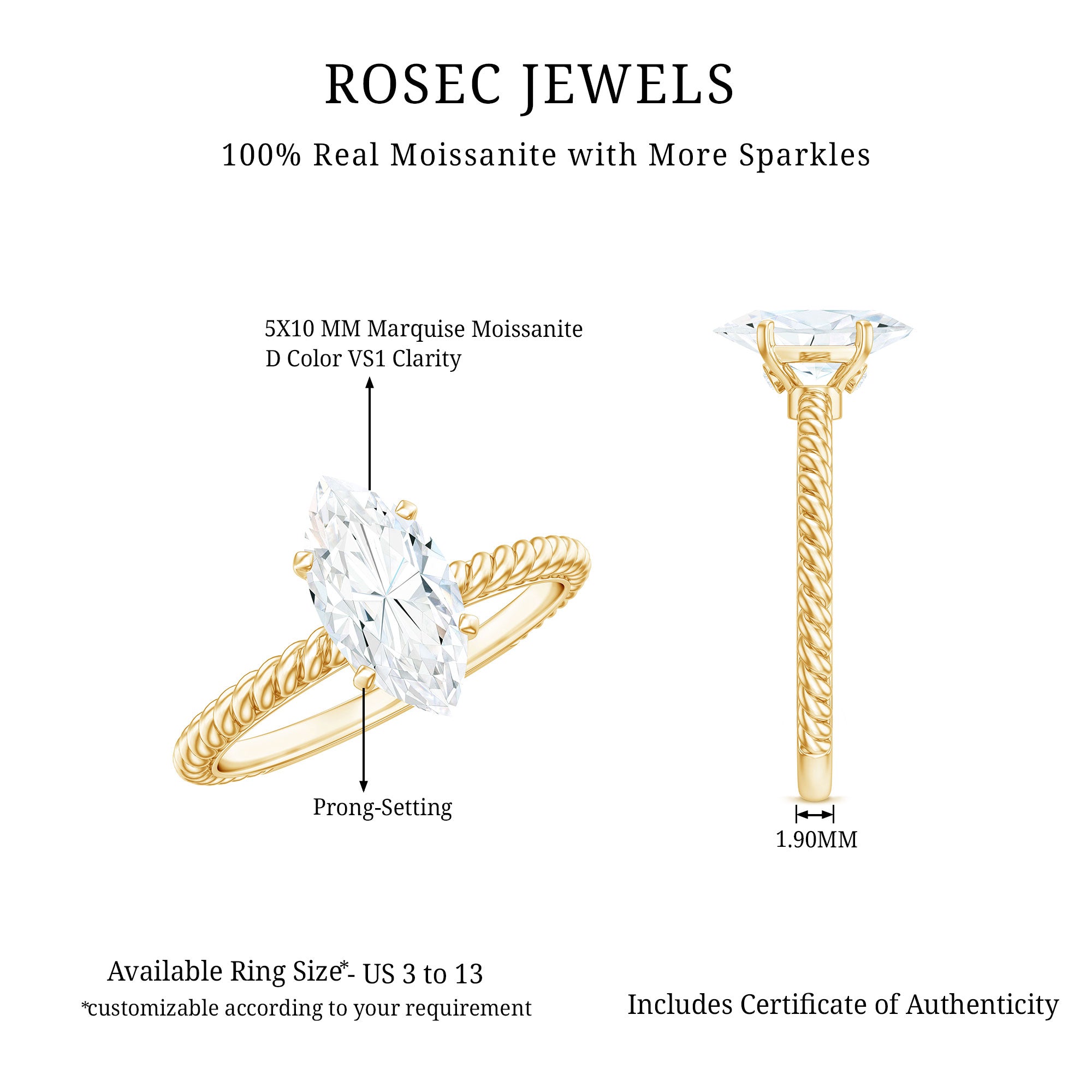 5X10mm Marquise Cut Moissanite Solitaire Engagement Ring with Twisted Rope Shank