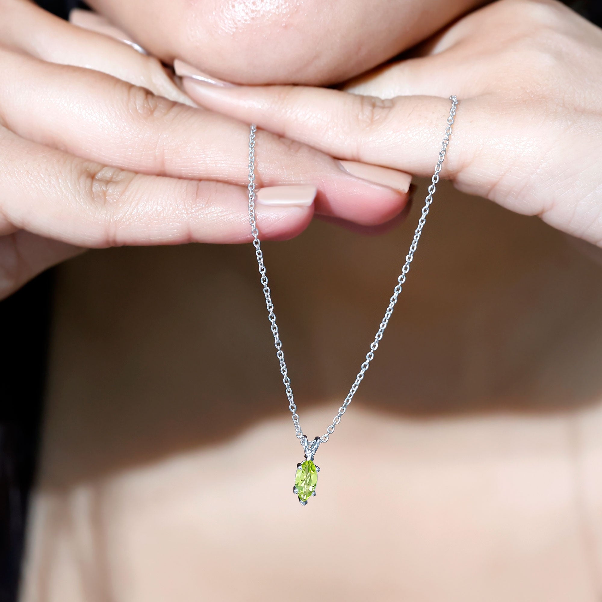 Marquise Cut Peridot Birthstone Necklace with Silver Chain