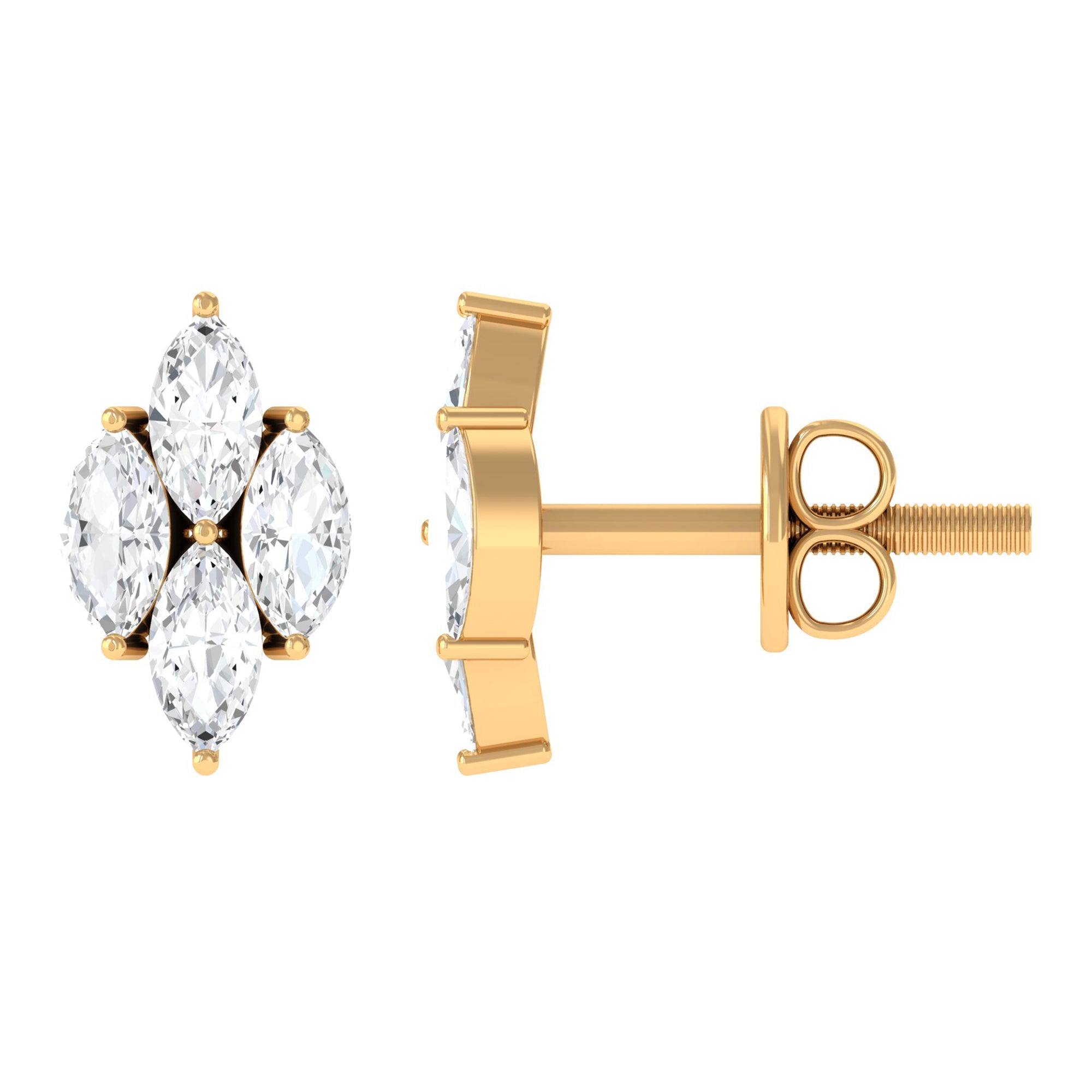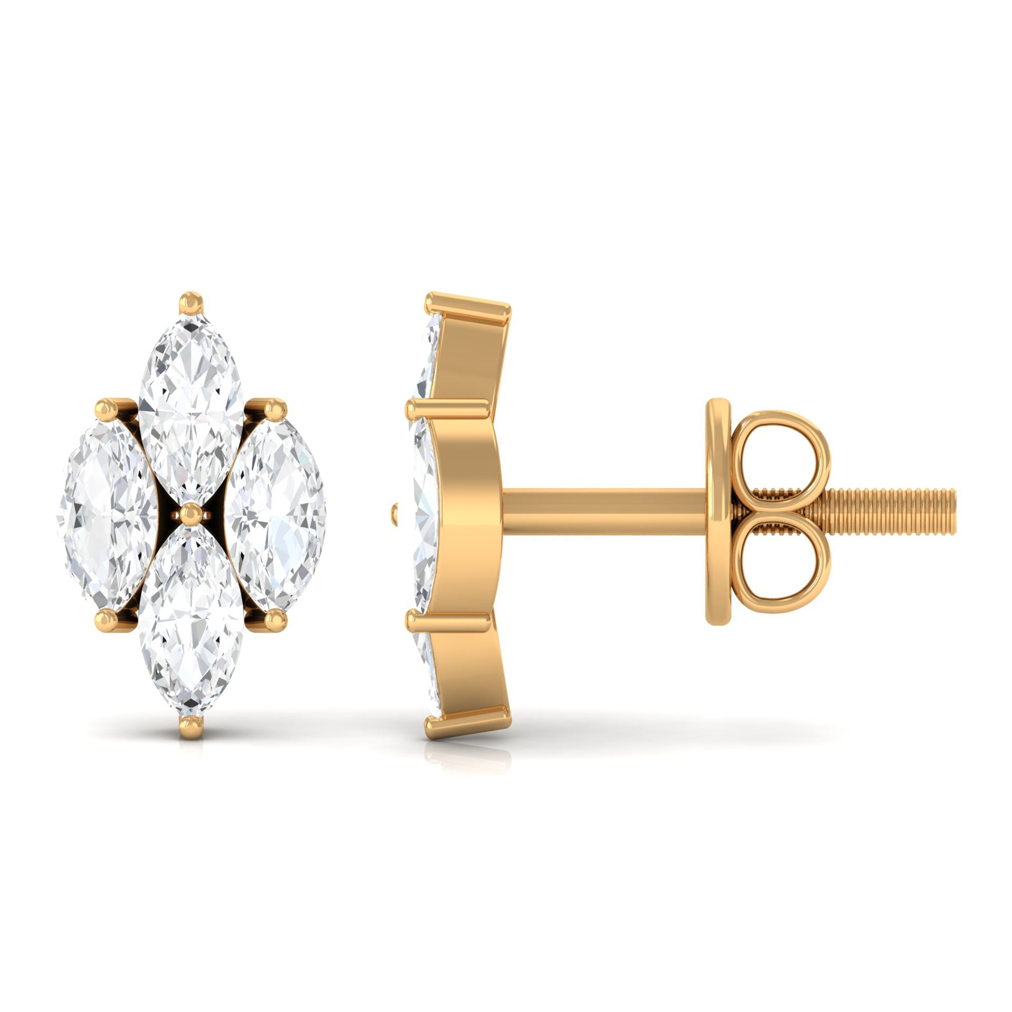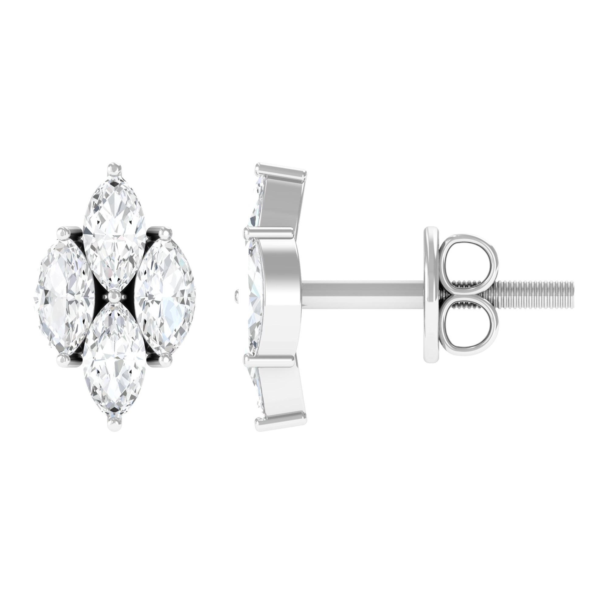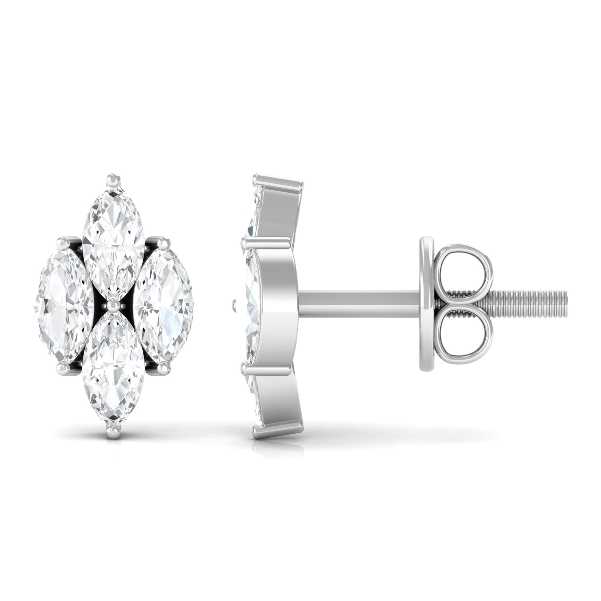 Achieve a chic and sophisticated look with our stunning Diamond Cluster Stud Earrings. This pair showcases four marquise-cut diamonds elegantly set together in a cluster formation. Perfect for Aries or April-born women, these earrings add a touch of elegance to any outfit. Rest assured.