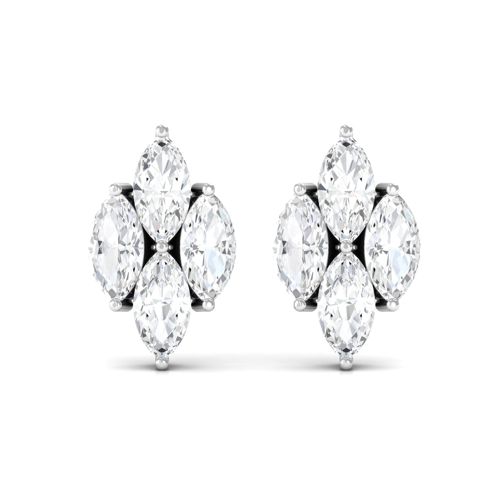 Marquise Cut Real Diamond Cluster Stud Earrings