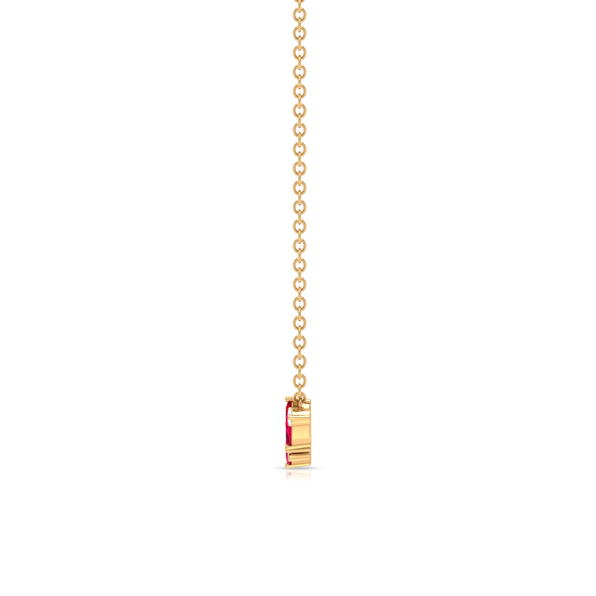 Looking for something to adorn your neckline with sparkling gemstones, then this Ruby Necklace is precisely crafted for you. It features Marquise Shape Petite Ruby secured in Prong Setting forming a curved bar which is adorned with Round Shape smaller Diamonds which makes it captivating. This Leaf Necklace beholds the classic shine of AAA Quality Ruby and HI-SI Quality Diamond which makes it beautiful. This Ruby Diamond Pendant will be delivered to you in the classic jewelry box with a certificate of gemstone authenticity.