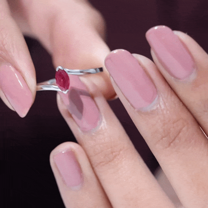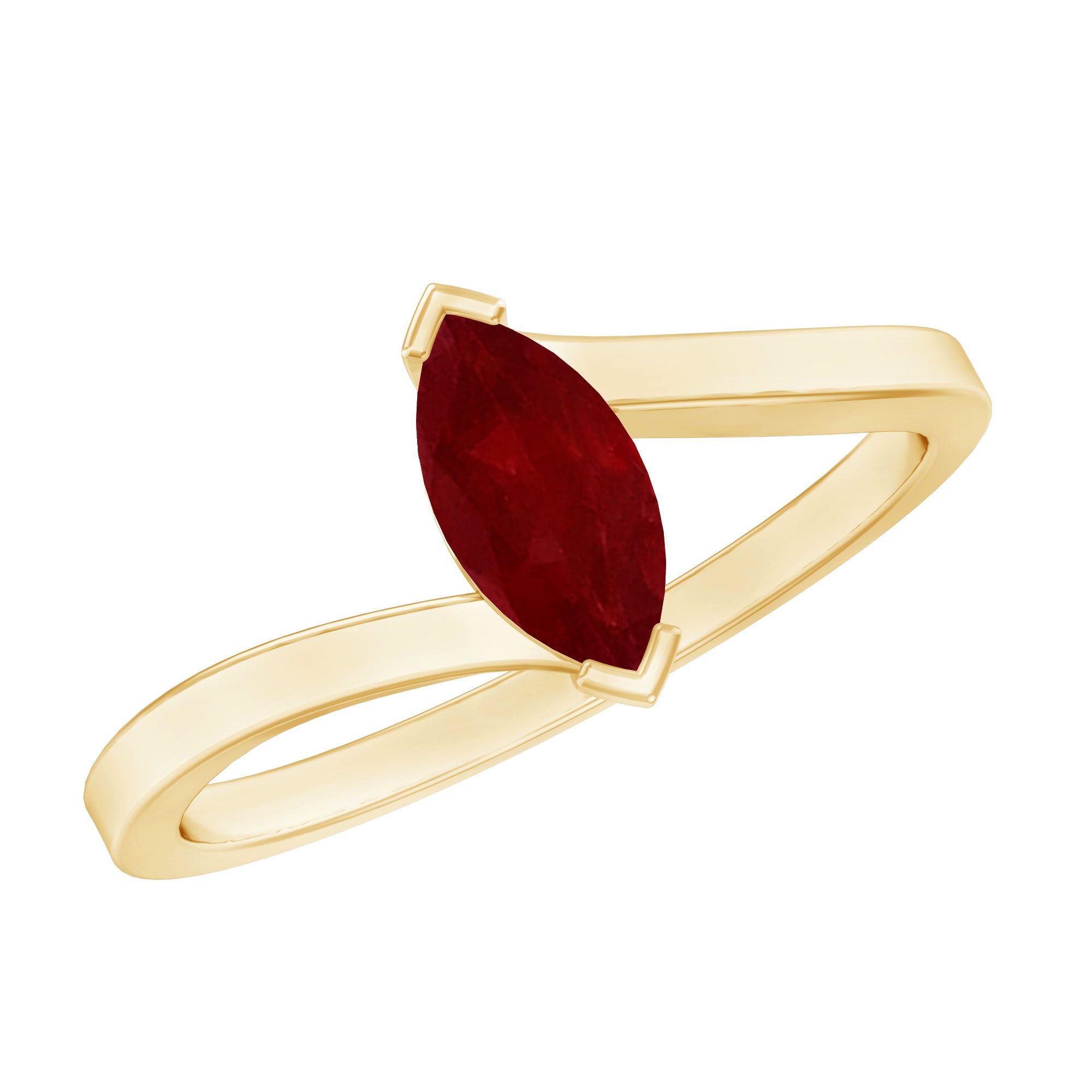 Marquise Cut Ruby Solitaire Ring in Bypass Shank
