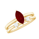 Marquise Cut Ruby Solitaire Ring Set with Moissanite
