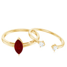 Unveil timeless elegance with this Solitaire Ring Set adorned with Marquise Shape Ruby and Round Moissanite, a captivating design that exudes brilliance.