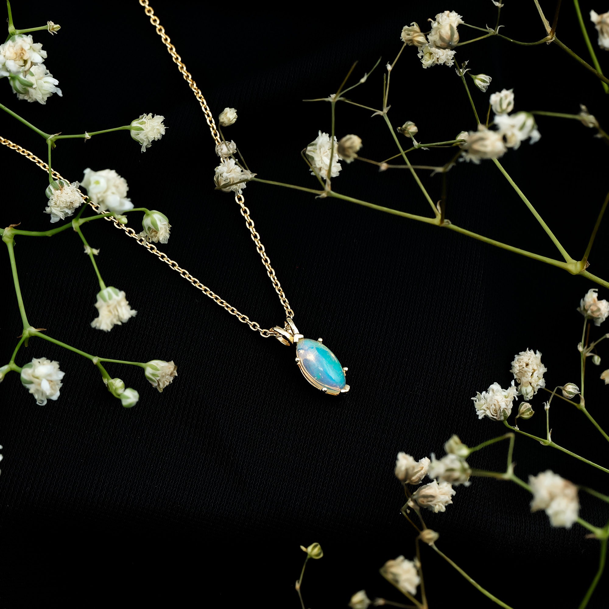 Marquise Cut Solitaire Ethiopian Opal Birthstone Necklace with Chain