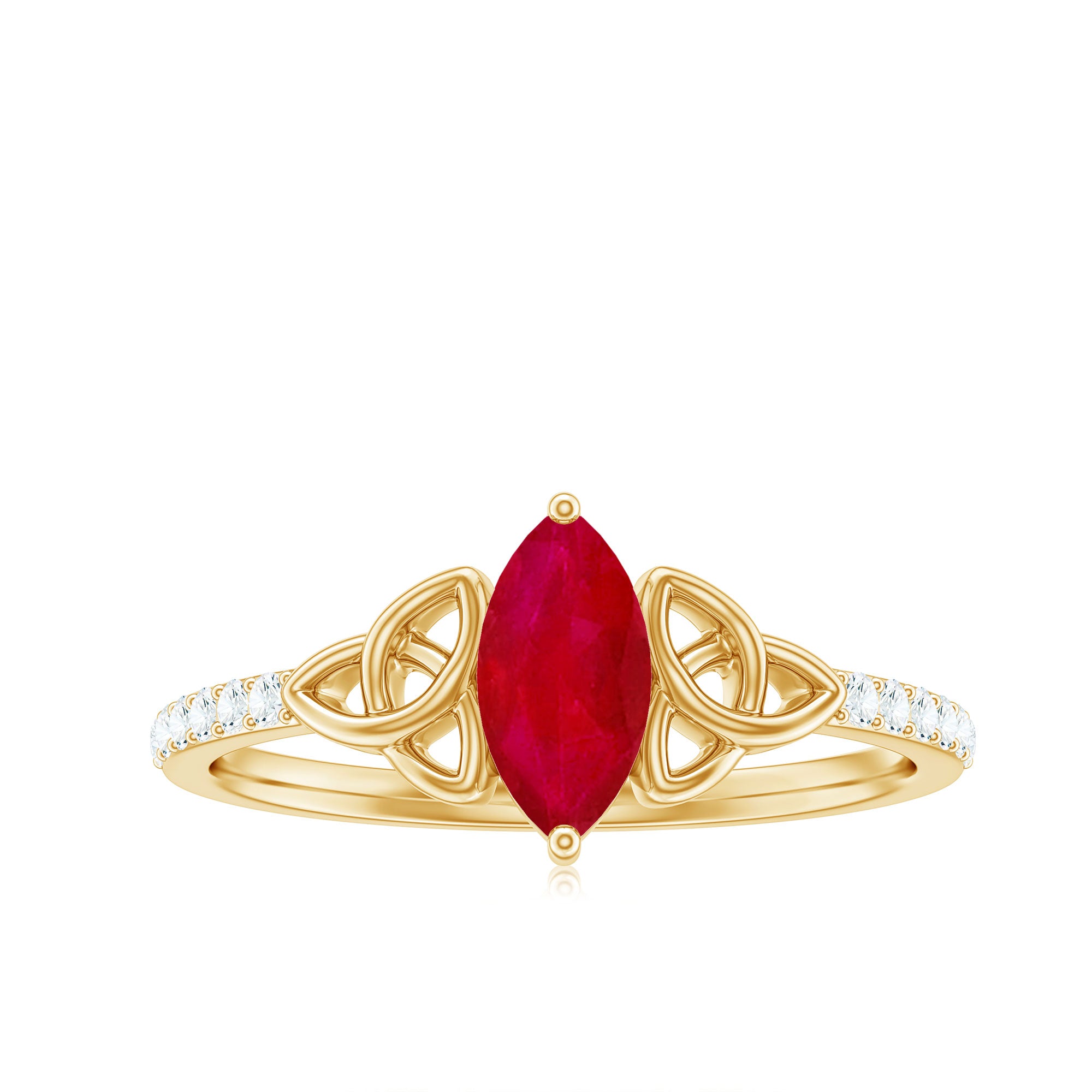 Marquise Cut Solitaire Ruby Celtic Knot Ring with Diamond