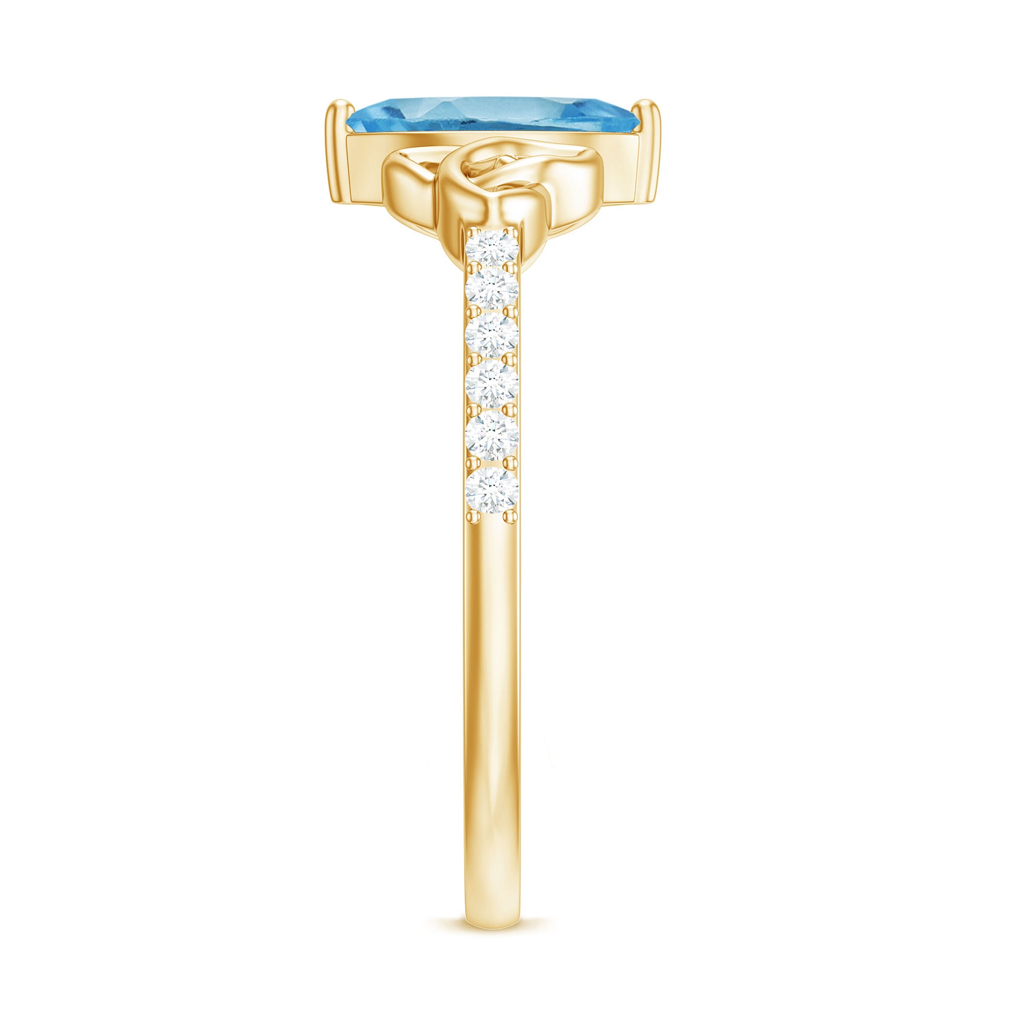 Marquise Cut Swiss Blue Topaz Solitaire Celtic Ring with Diamond