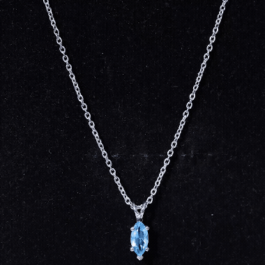 Make a statement without saying a word - this Real Blue Topaz Necklace is designed to turn heads and steal hearts. Featuring a 4X8 MM marquise cut Swiss blue topaz in secure prong setting, this 14k white gold plated Silver Solitaire Pendant is your new go-to for effortless style. Its perfect for adding a vibrant pop of blue to your everyday look. This Marquise Pendant Necklace with Chain exudes a classic shine of AAA Quality Swiss Blue Topaz. It will be delivered to you in a signature velvet pouch with the certificate of authenticity of the gemstone.
