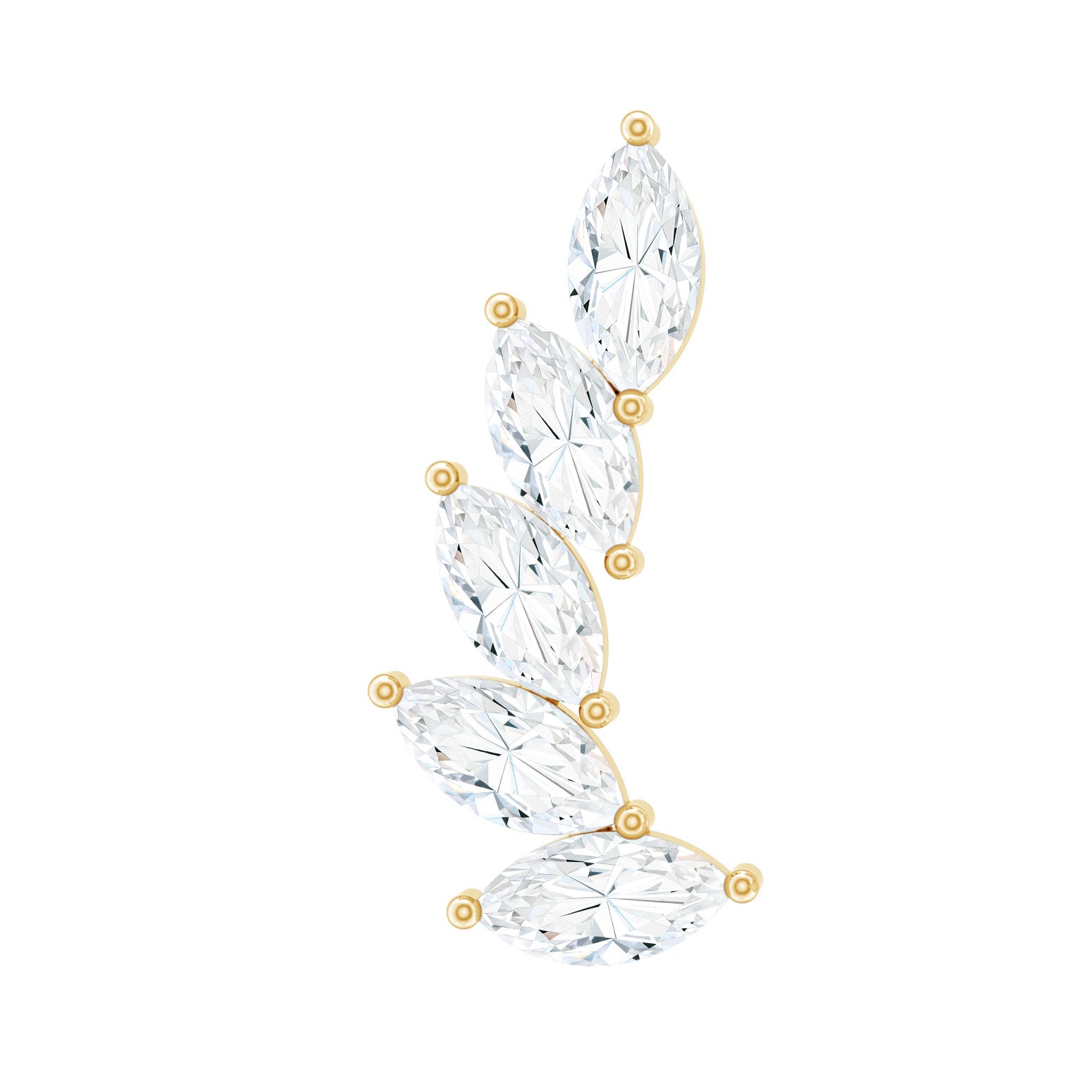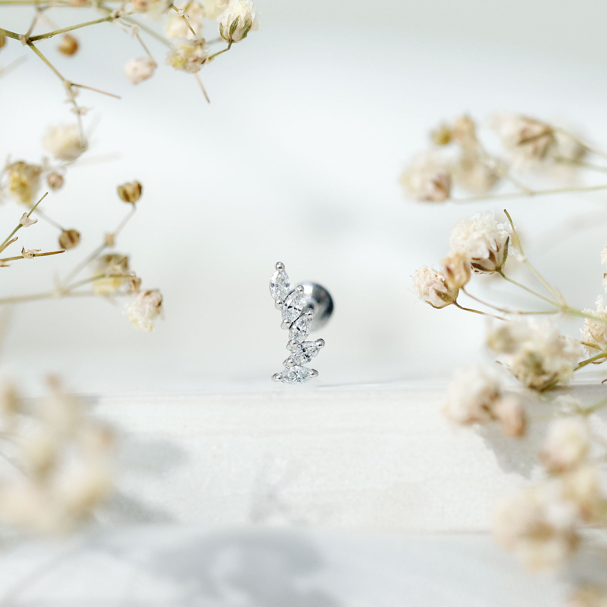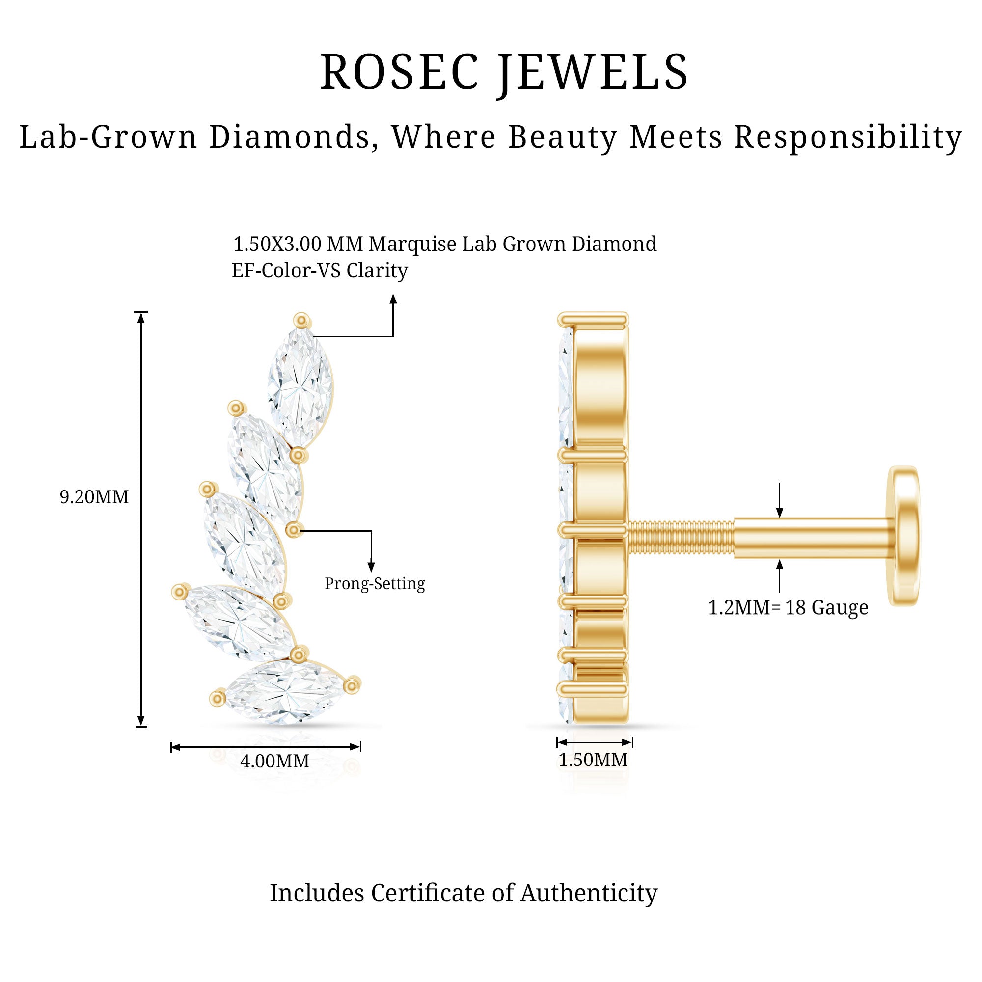 Inspired by a vine, this Diamond Crawler Earring showcases certified marquise cut diamonds that resemble sparkling leaves held in place by prong setting. This foliage-inspired diamond ear climber radiate romantic elegance with its delicate curves and subtle shimmer. You can slide this marquise diamond earring into your Helix, Cartilage, or Upper Lobe Piercings. It features a Flat Back Closure to ensure it stays secure. Prepare to elevate your ear game, as this angelic diamond helix earring is your golden ticket to divine glam. There are countless ways to style this Marquise Stud Earring, you can pair it with another stud, a hoop, or any bold statement jewelry piece! It also makes a perfect birthday gift, anniversary present, or romantic surprise, beautifully commemorating lifes most treasured moments. It comes in a variety of metal color options and is also available in different metal types. This Piercing Stud includes a certificate of authenticity for the gemstones and is presented in a premium storage box.