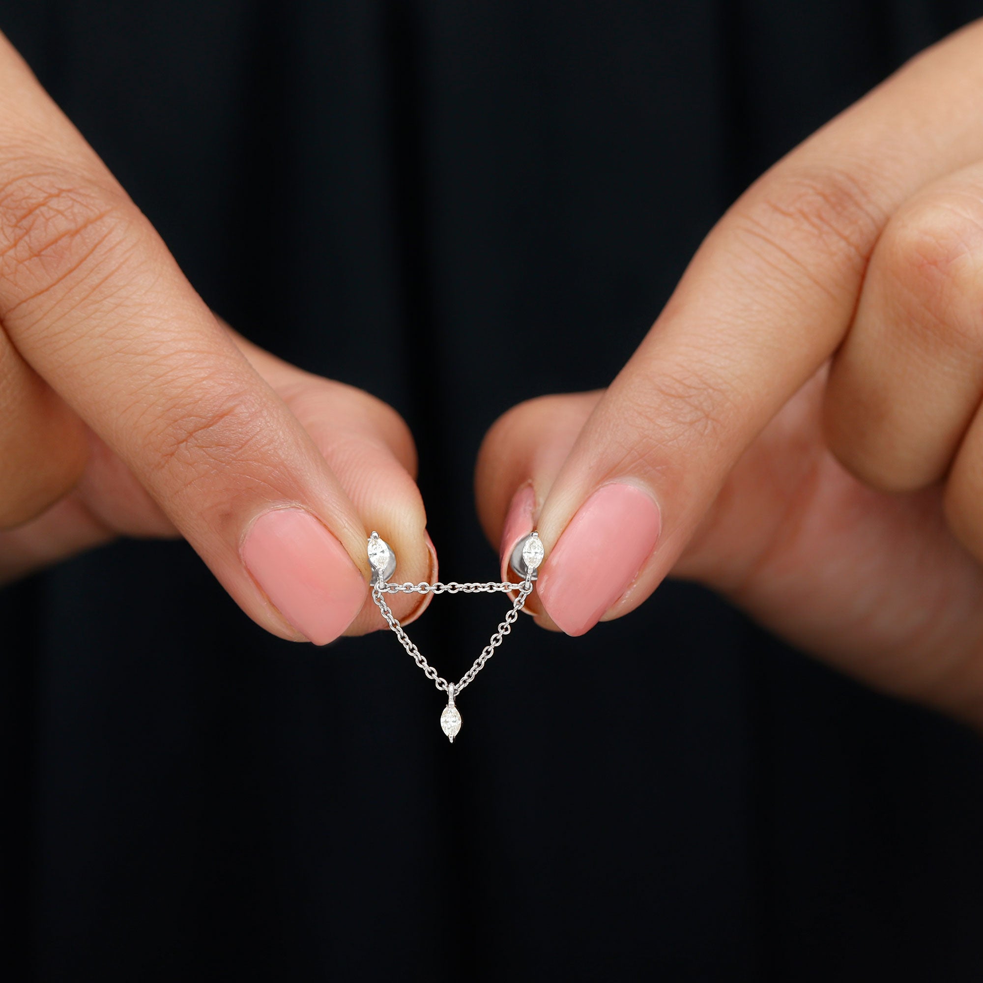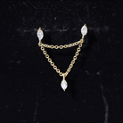 Marquise Diamond Double Piercing Earring with Dangling Chain