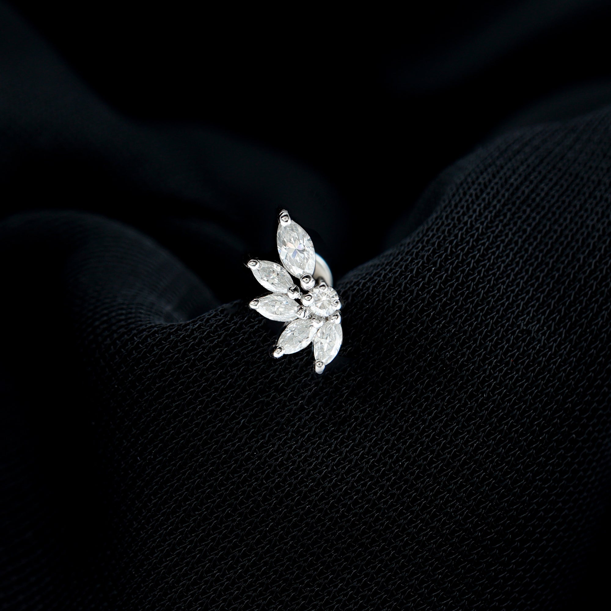 Marquise Diamond Leaf Cluster Earring for Cartilage Piercing