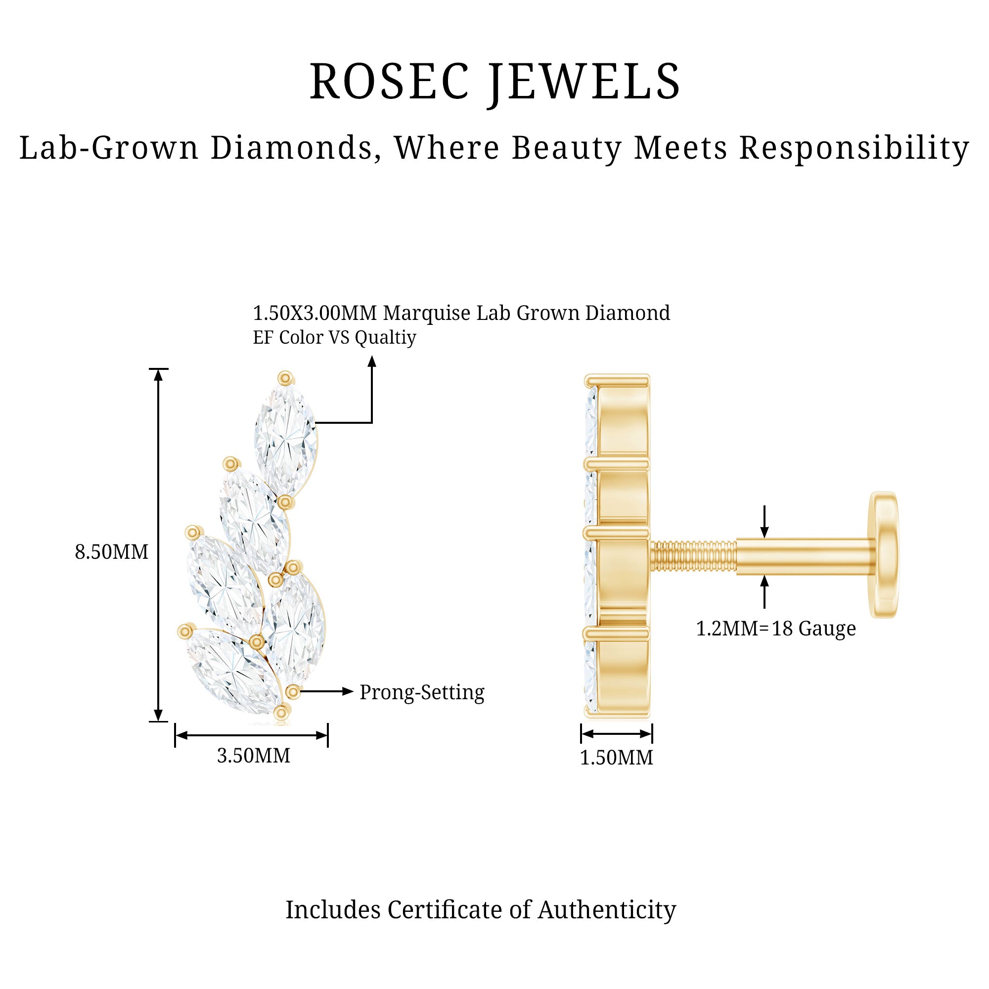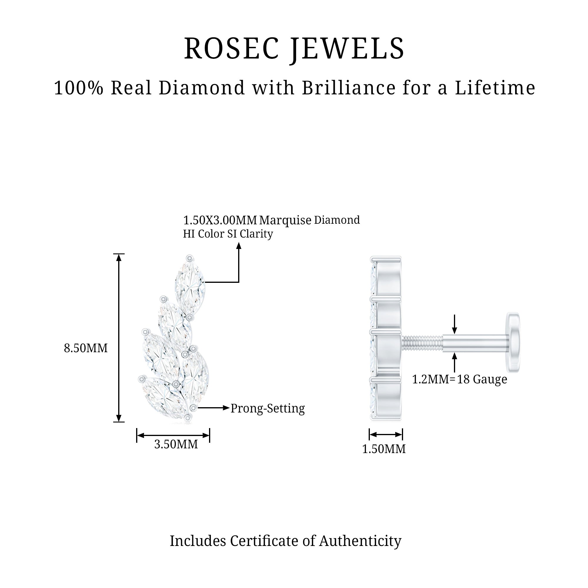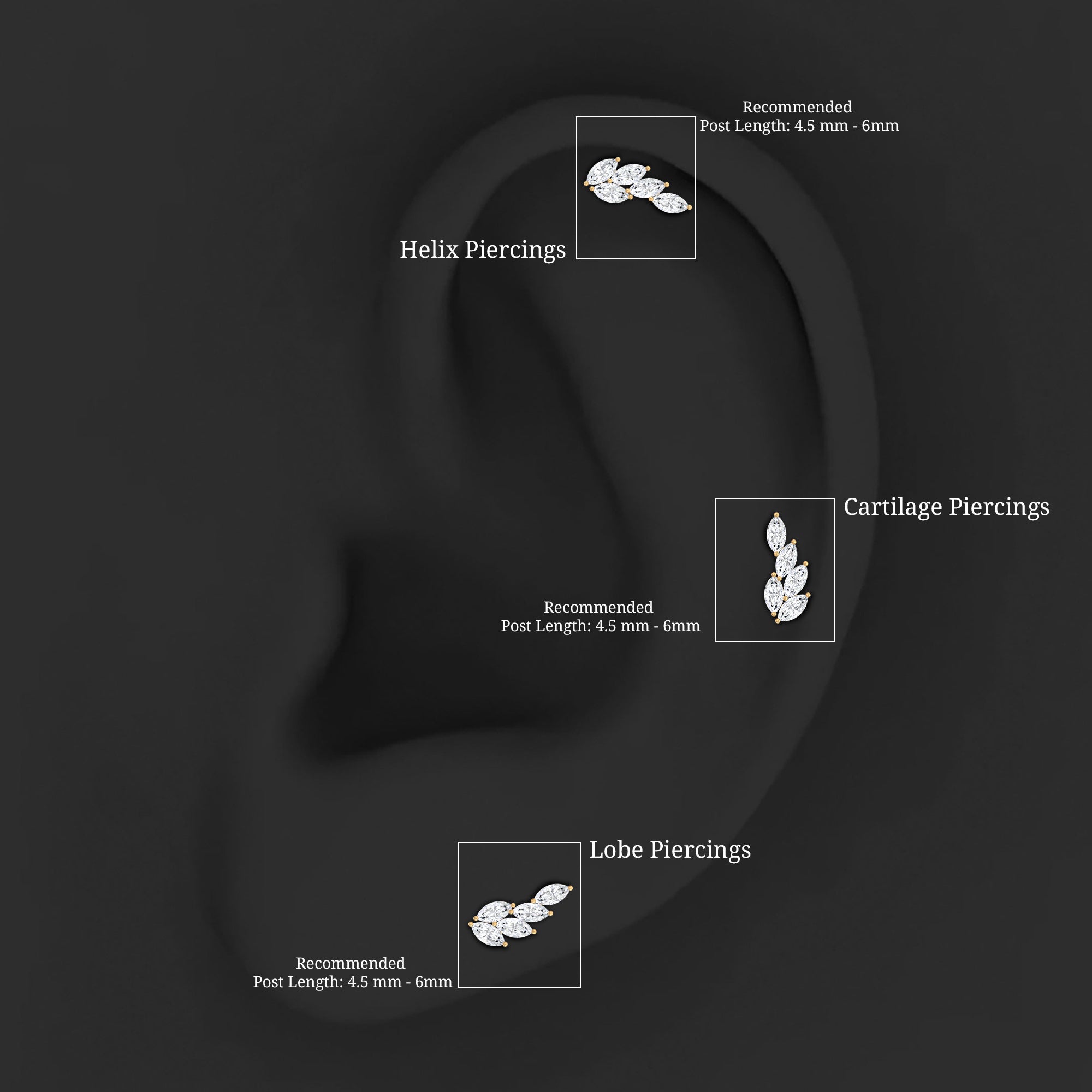 Marquise Diamond Leaf Cluster Earring for Helix Piercing