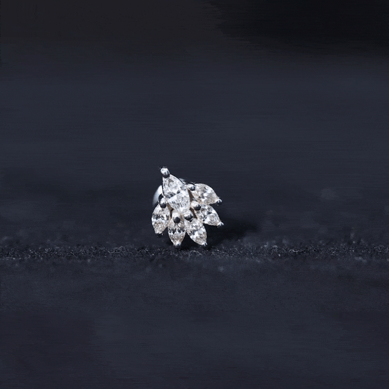 - You can style this Marquise Diamond Earring on your helix, cartilage, or upper lobe piercing. The Flat back closure will keep it secured in place.