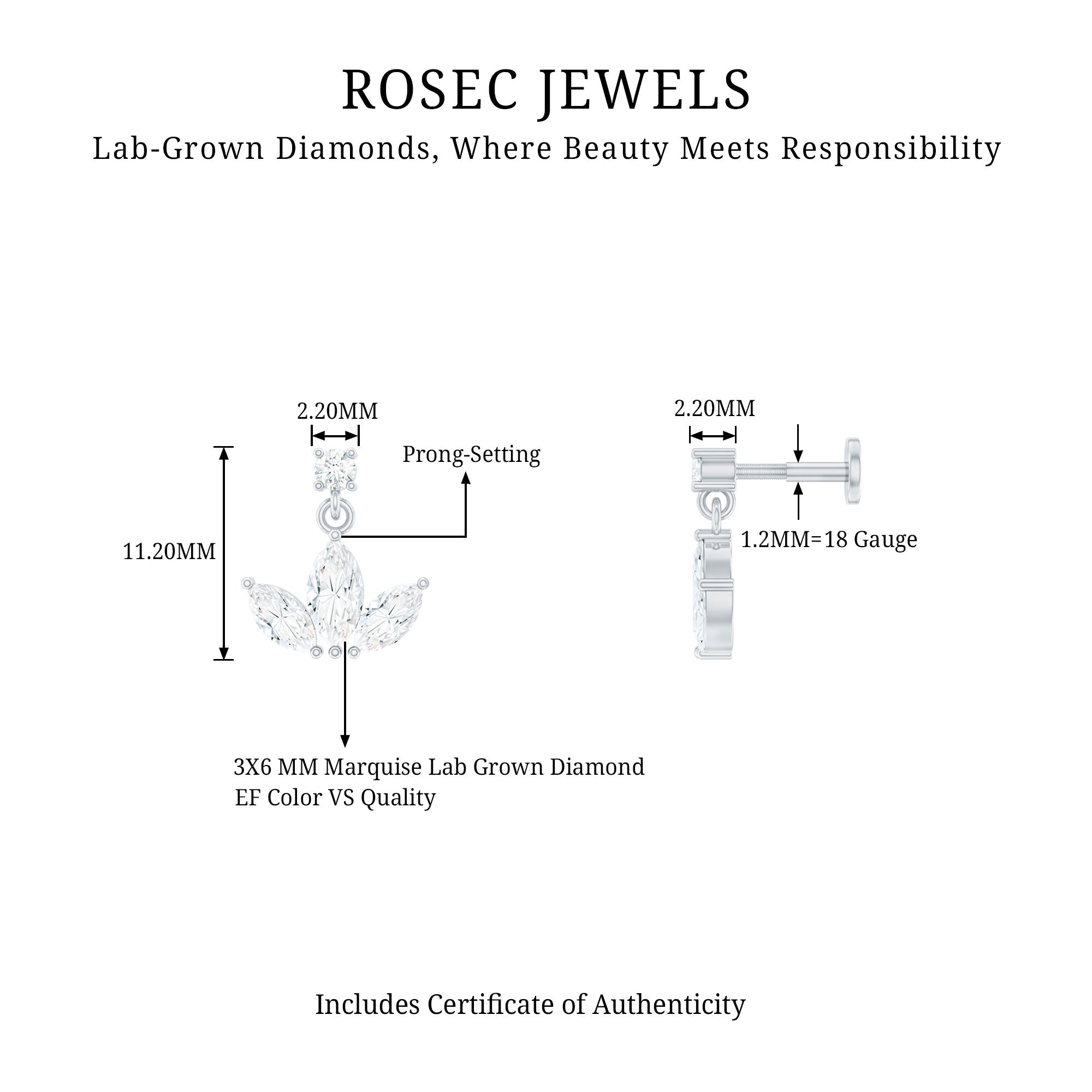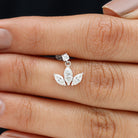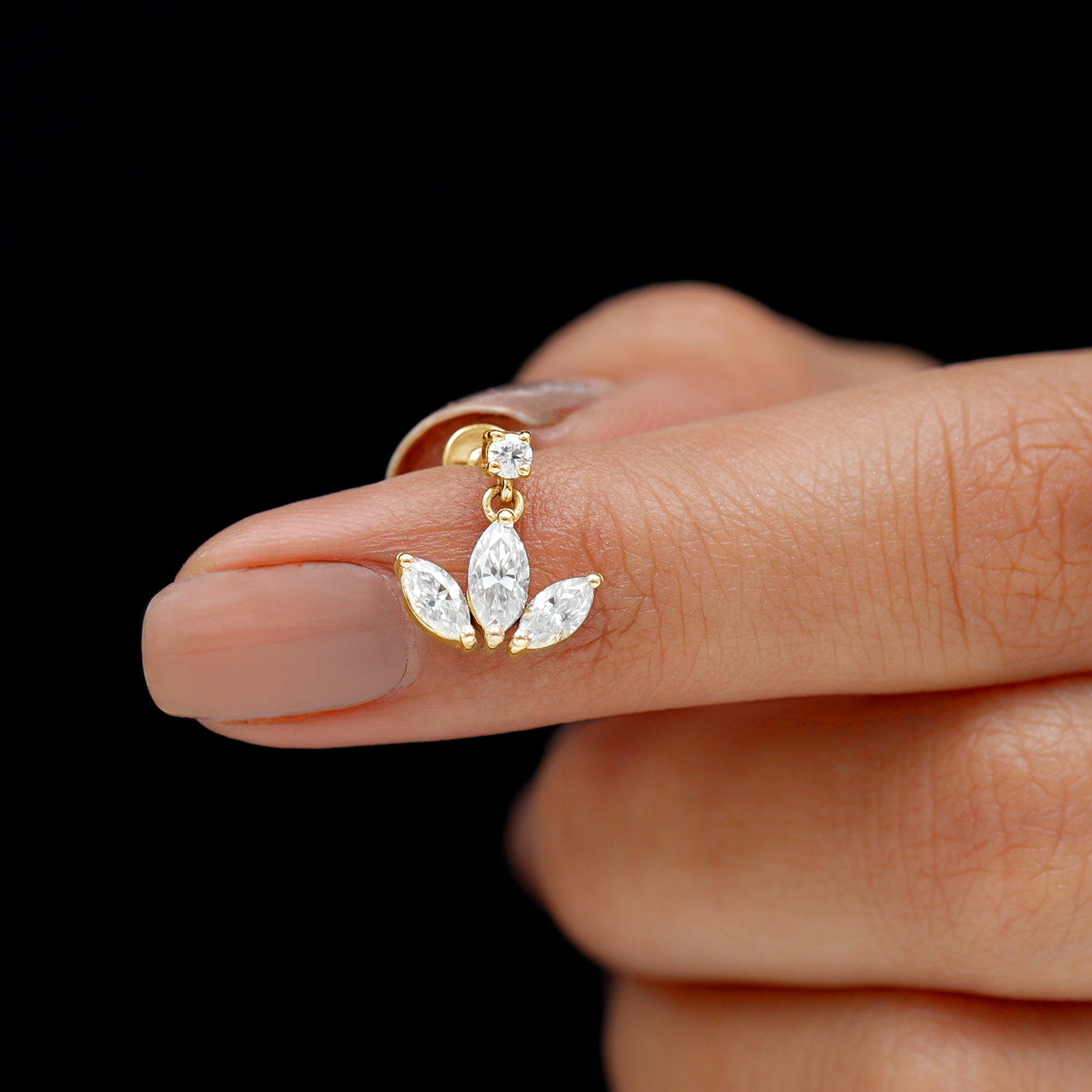 - Showcasing a round shape diamond on the top while a trio of marquise shape diamonds hanging as drop resembling a lotus, secured by prong setting.
