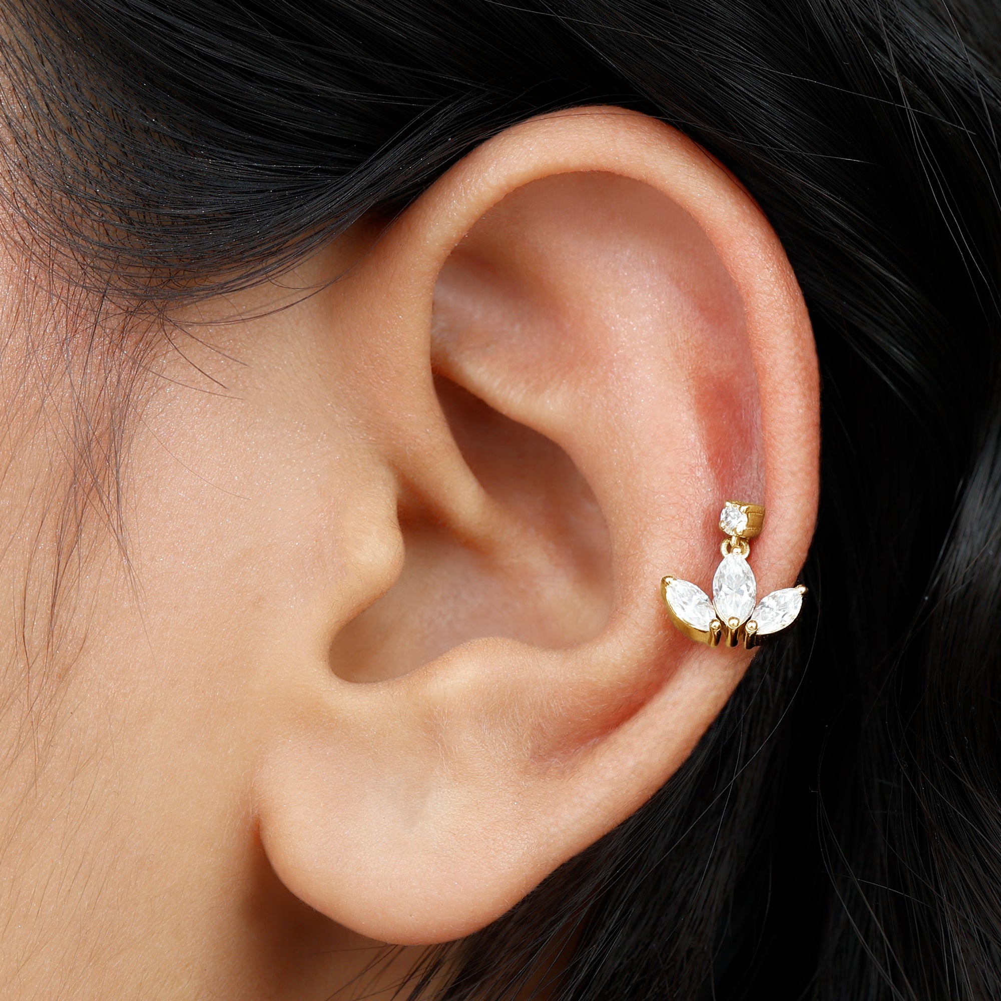 - You can wear this diamond lotus earring solo or stack it with your other favorite pieces of jewelry. Can be styled on your Helix, Cartilage, or Upper Lobe Piercing.