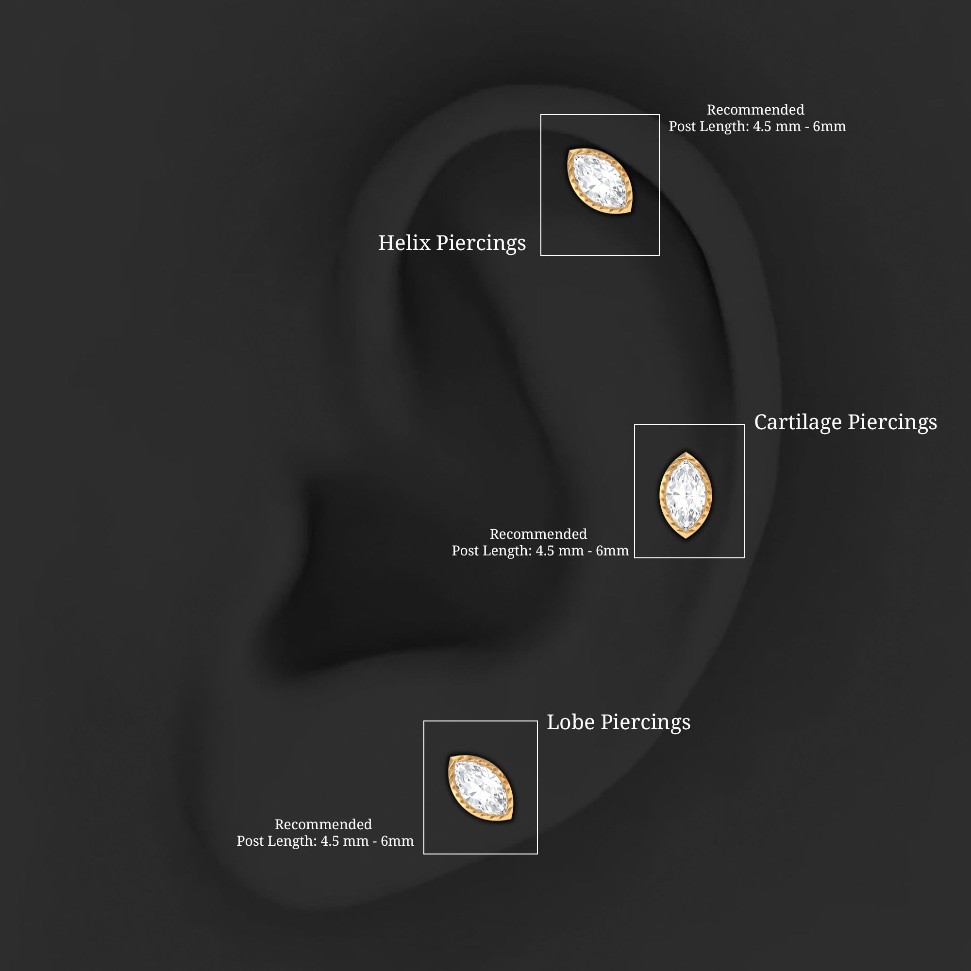 - Trending and captivating, wear this diamond earring on your Tragus, Helix, Cartilage, or Upper Lobe Piercing, enhancing your look effortlessly. Perfect for any occasion and attire, this marquise earring adds a touch of refinement to your ensemble.