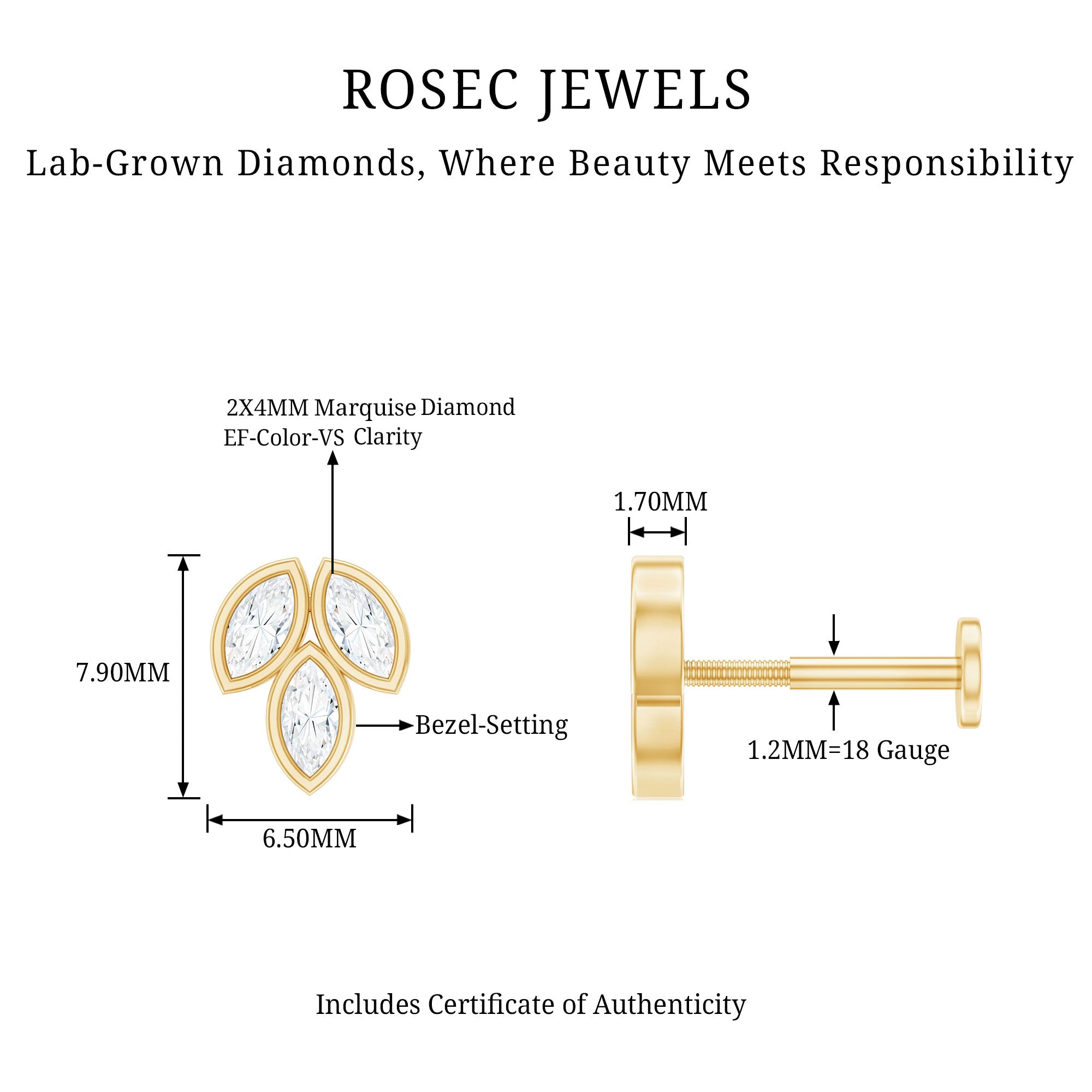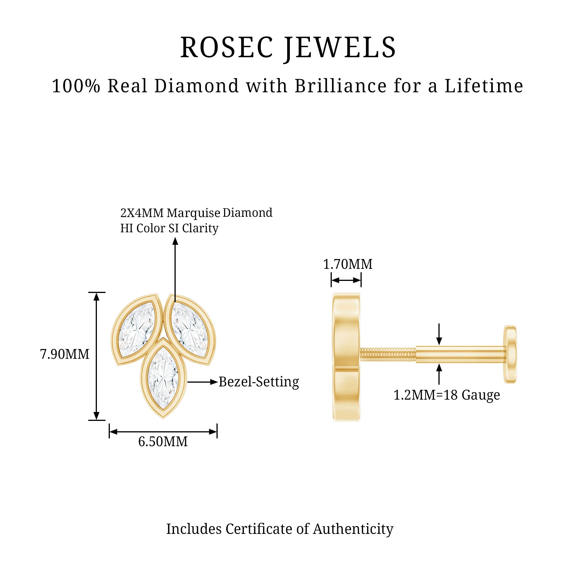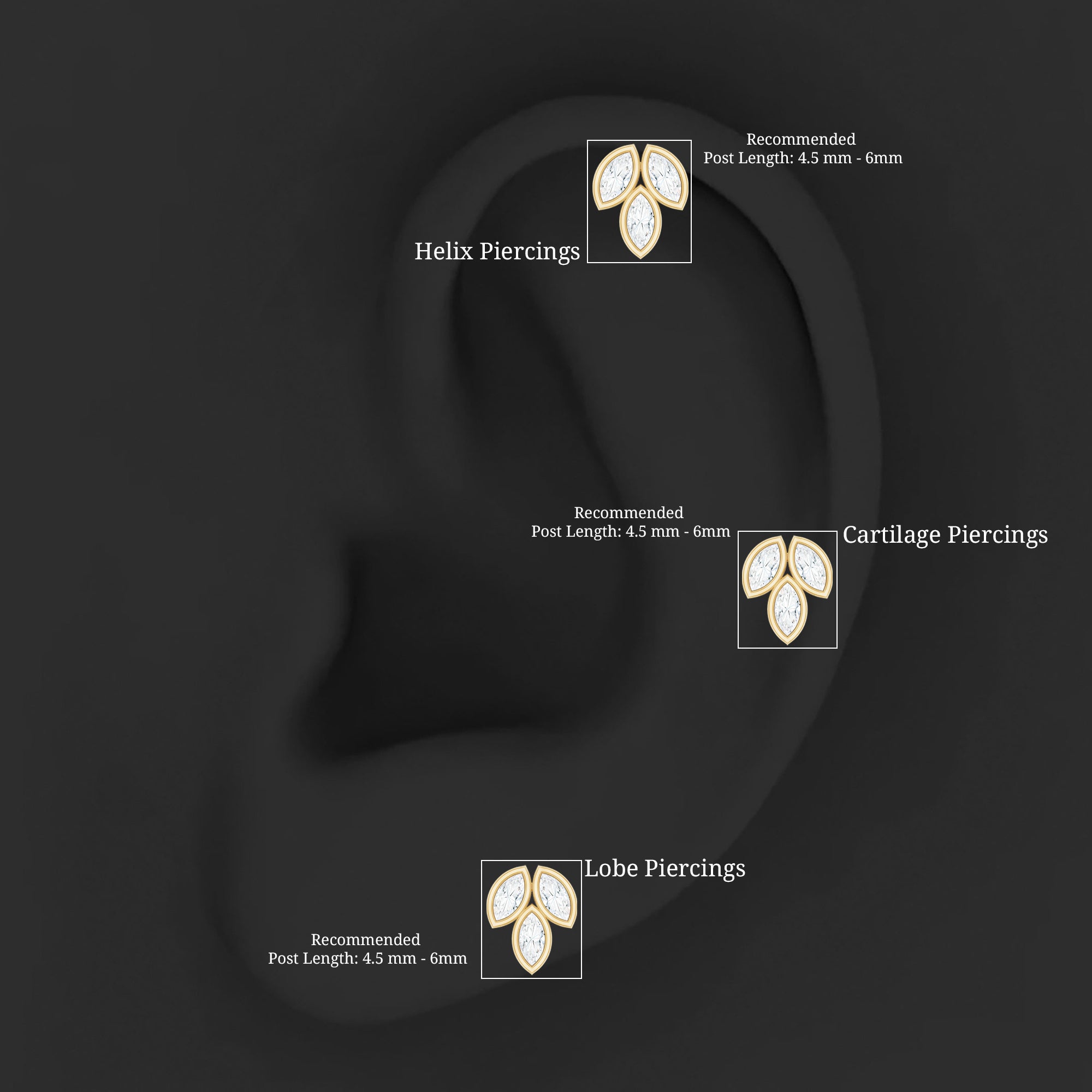 All the best things come in threes, isnt it. The Three Diamond Cluster Earring is super chic and simple. This earring features Certified Diamonds secured by Bezel Setting, composed of Precious Metal for a finished appearance. Already have one piercing. No need to worry, Get this Three Diamond Earring, it is the perfect everyday studs to wear in your high lobes. Or, this stud is the perfect way to add sparkle to your stack - wear it with huggie earrings & chunky hoops for a more statement look. The Flat Back closure provides a secured carrying for all the time these are adorned.