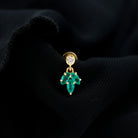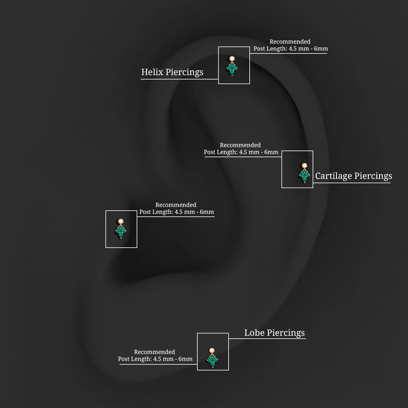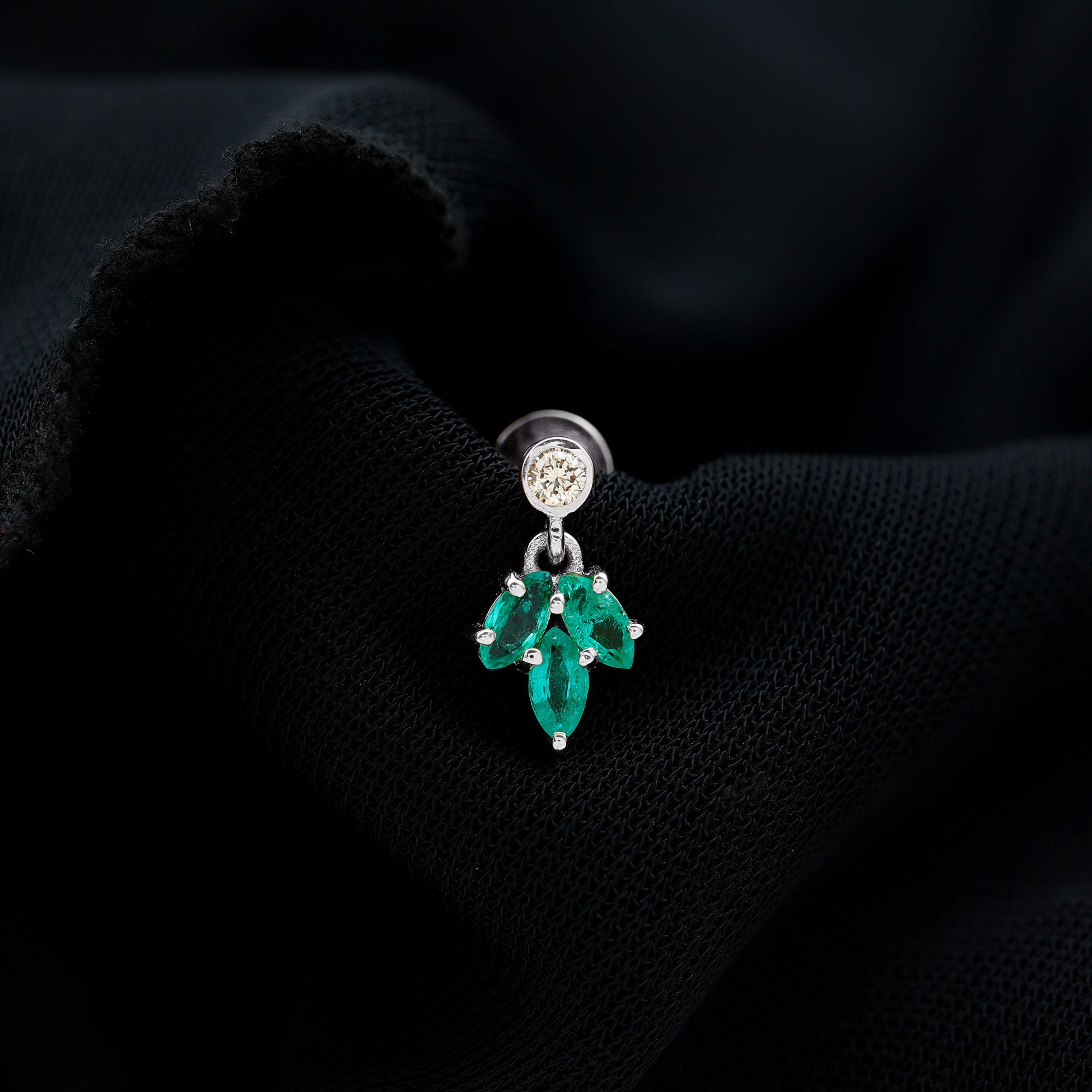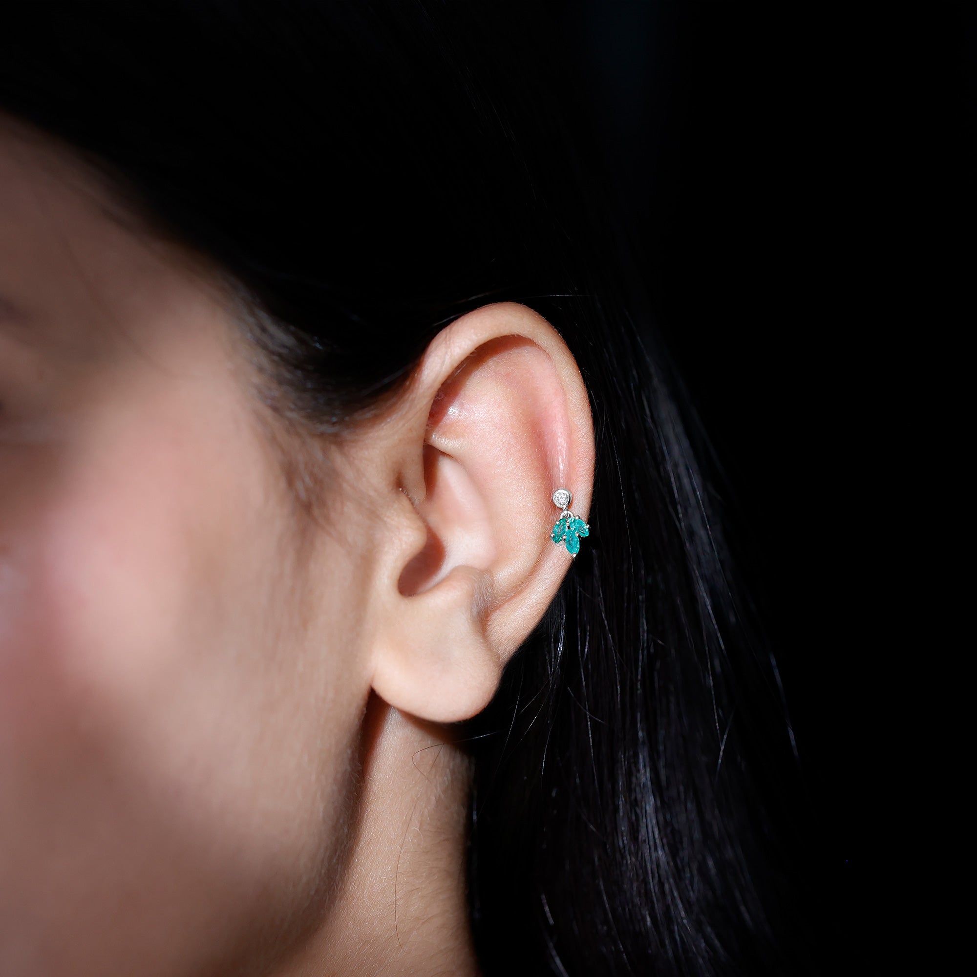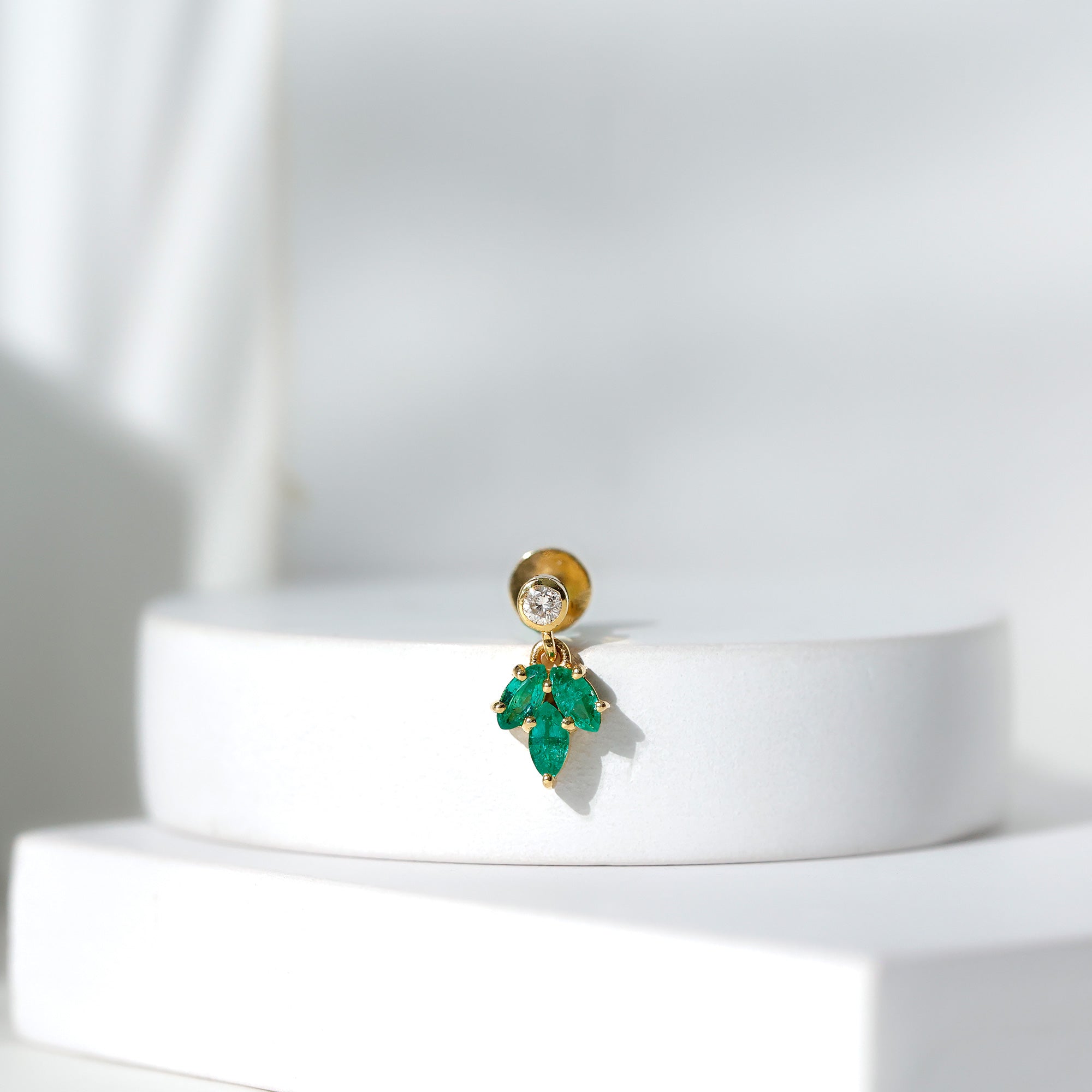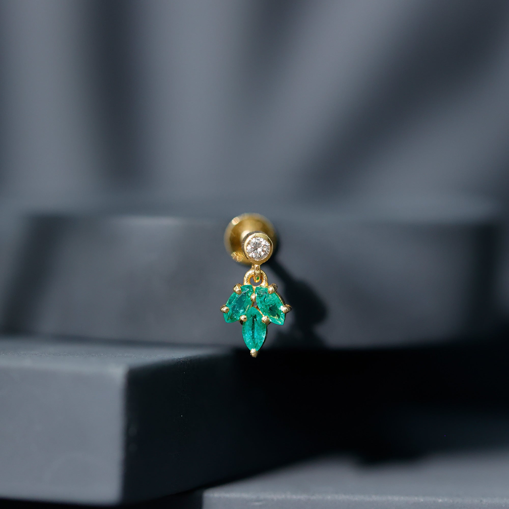 Let Nature inspire your style! This Emerald Leaf Earring features shimmering Marquise Emeralds securely nestled in a leaf-inspired design, adorned with Prong Setting with a Round Diamond on the top secured by bezel setting. Perfect for adorning your Helix, Cartilage, Conch, or Upper Lobe Piercing, this Emerald Leaf Earring exudes charm that effortlessly complements your casual, formal, and party ensembles. Capture the heart of your beloved wife with this exquisite Emerald Earring, making it an ideal anniversary, birthday, or Mothers Day gift. Witness her priceless reaction as she discovers the beauty of this nature-inspired piece.