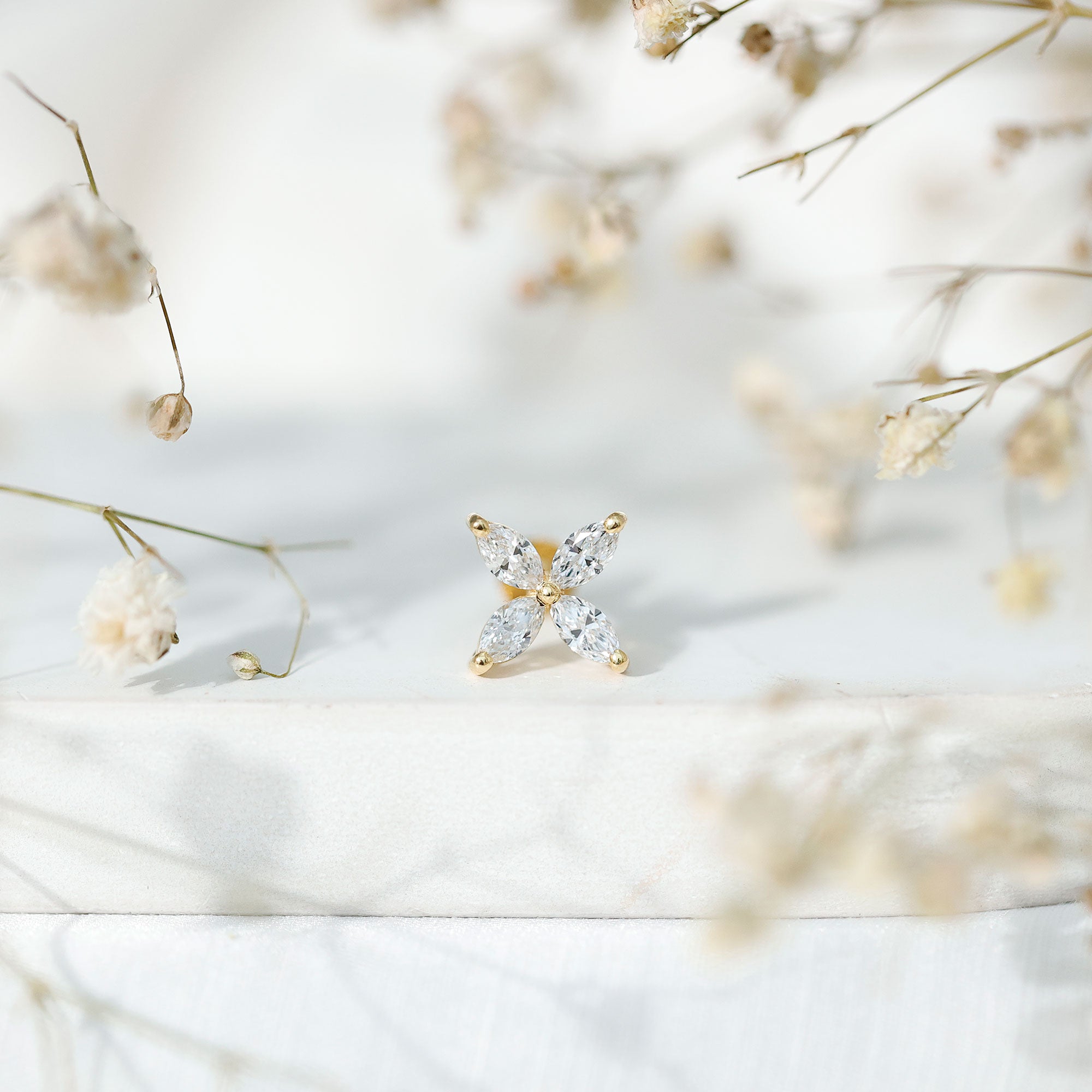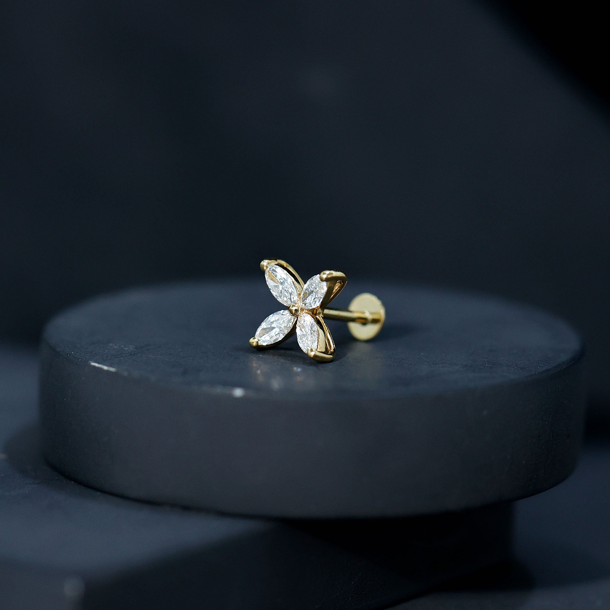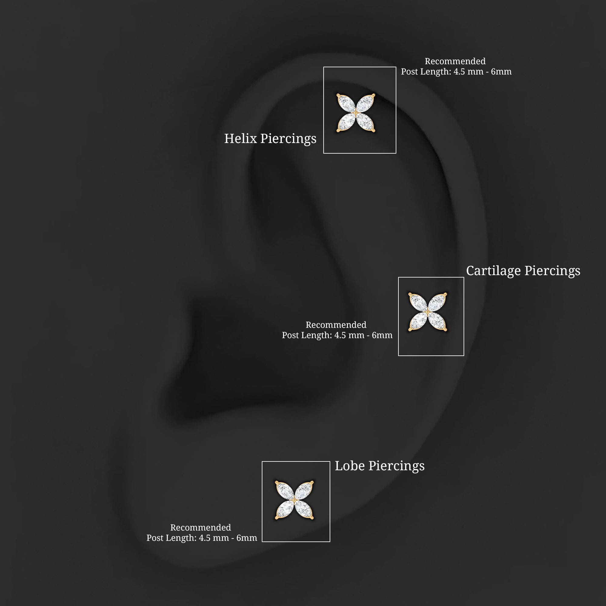 - You can wear this marquise diamond earring on your Helix, Cartilage, or Upper Lobe Piercing. The flat back closure will keep it secured in place.