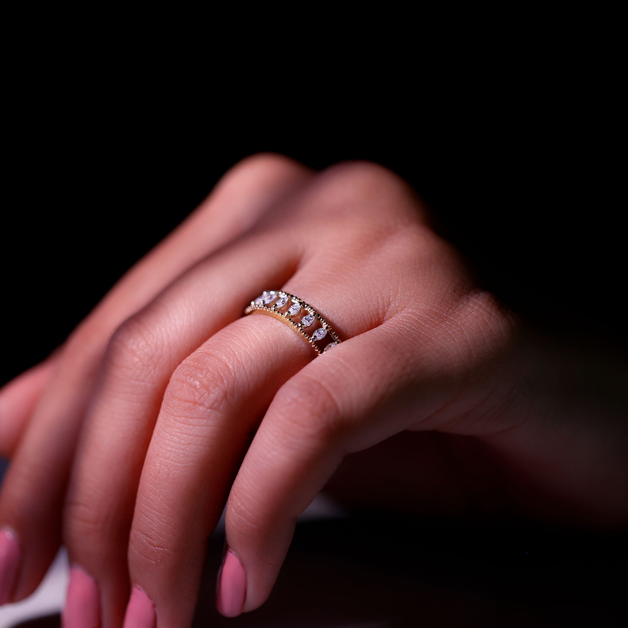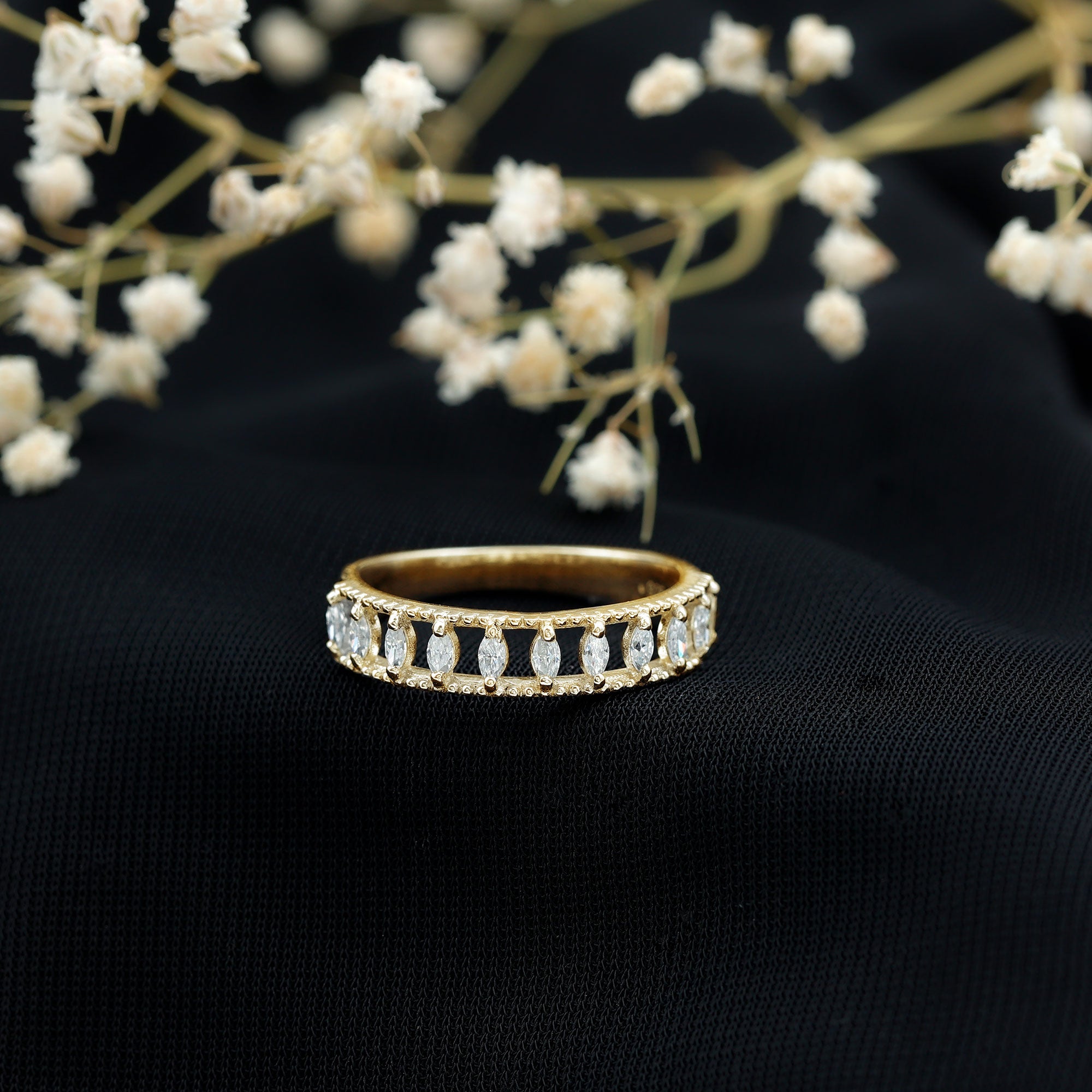 Marquise Moissanite Half Eternity Band Ring