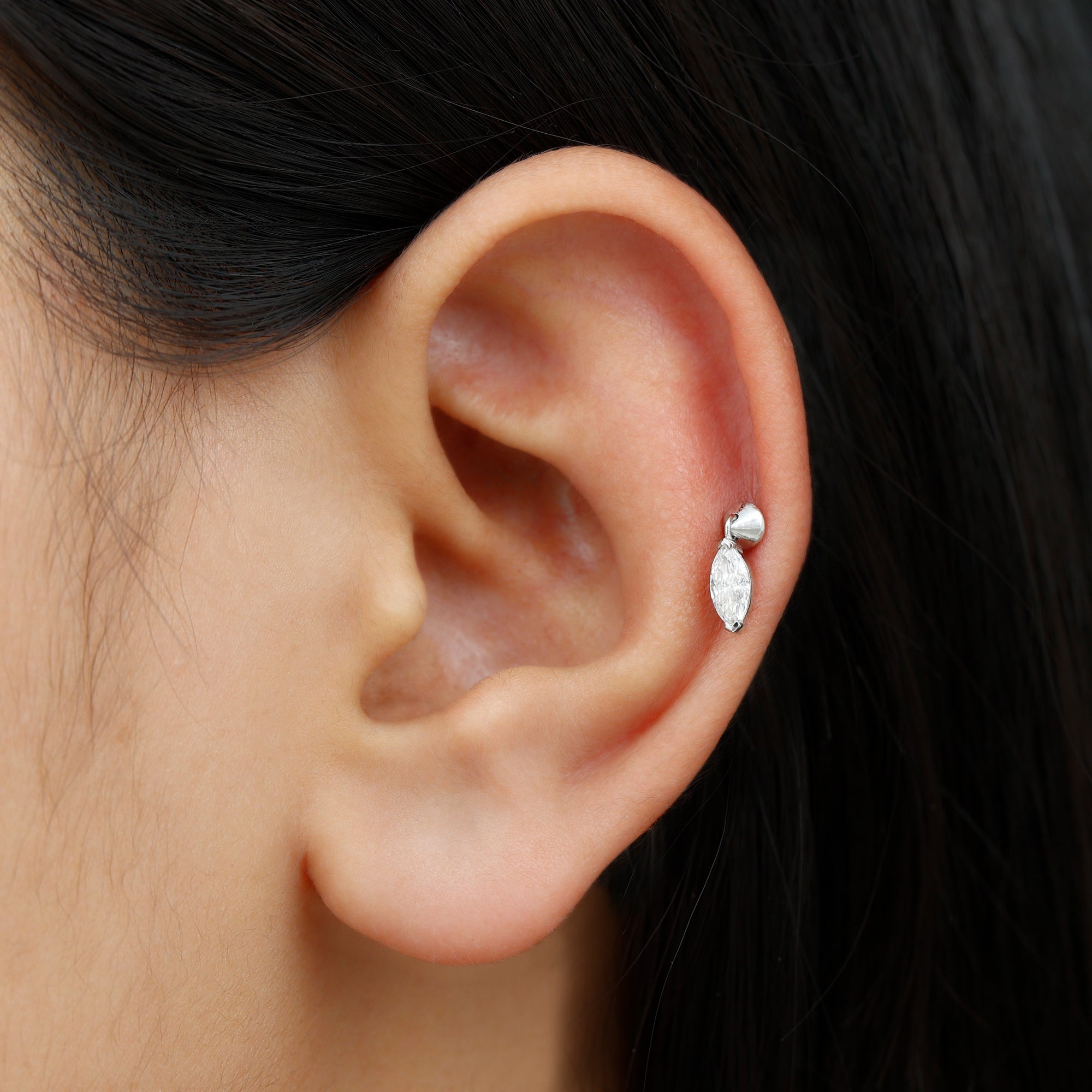 Marquise Moissanite Drop Earring for Tragus Piercing