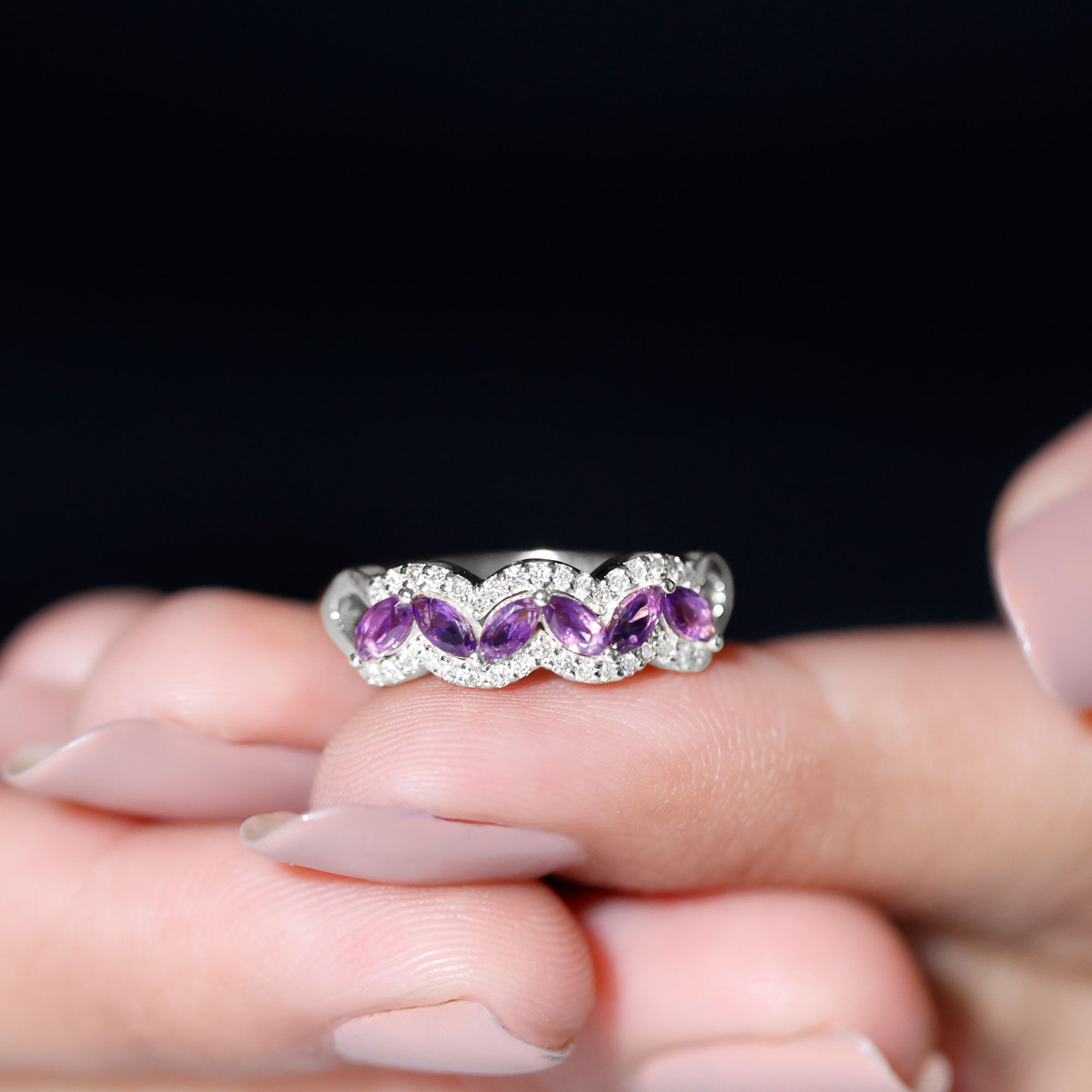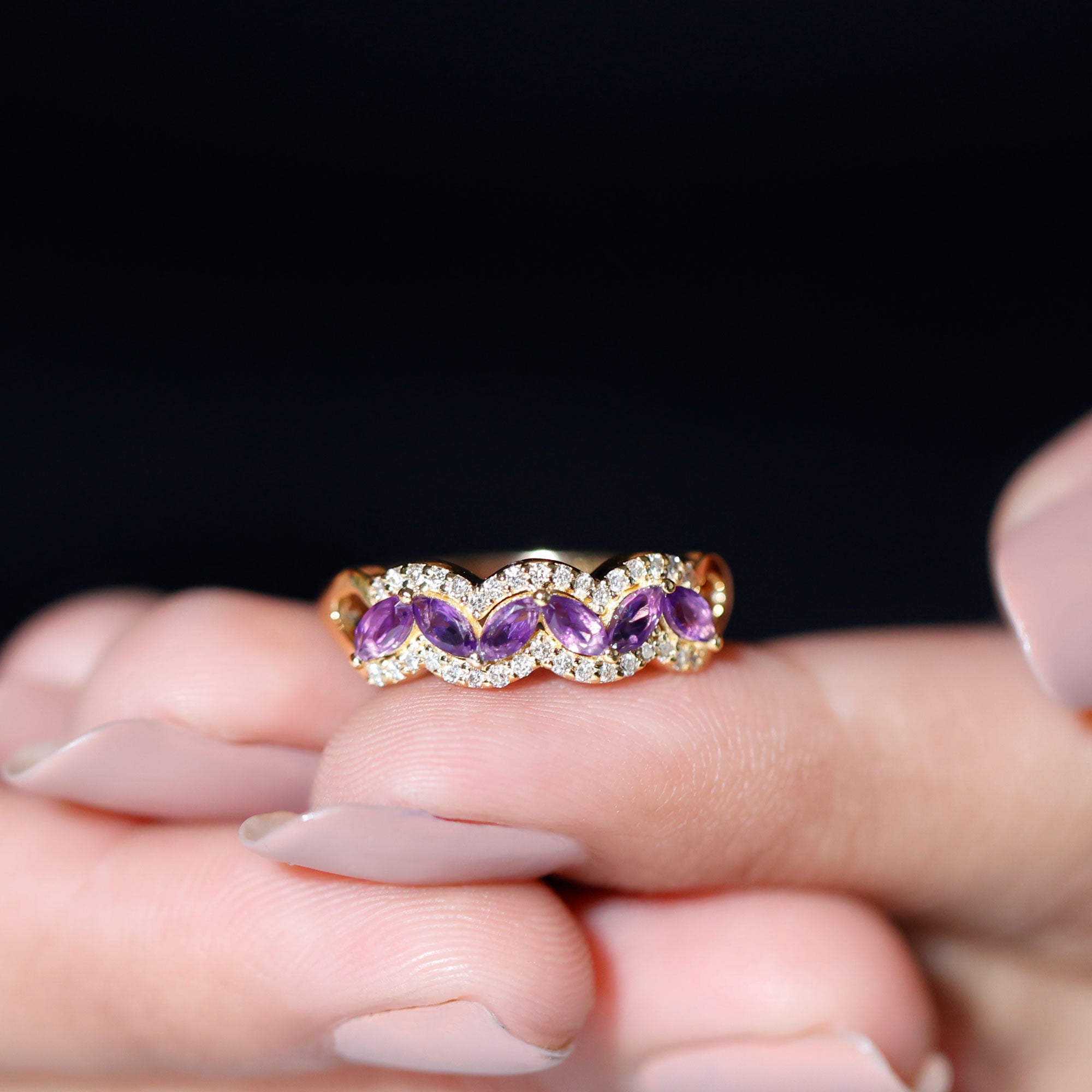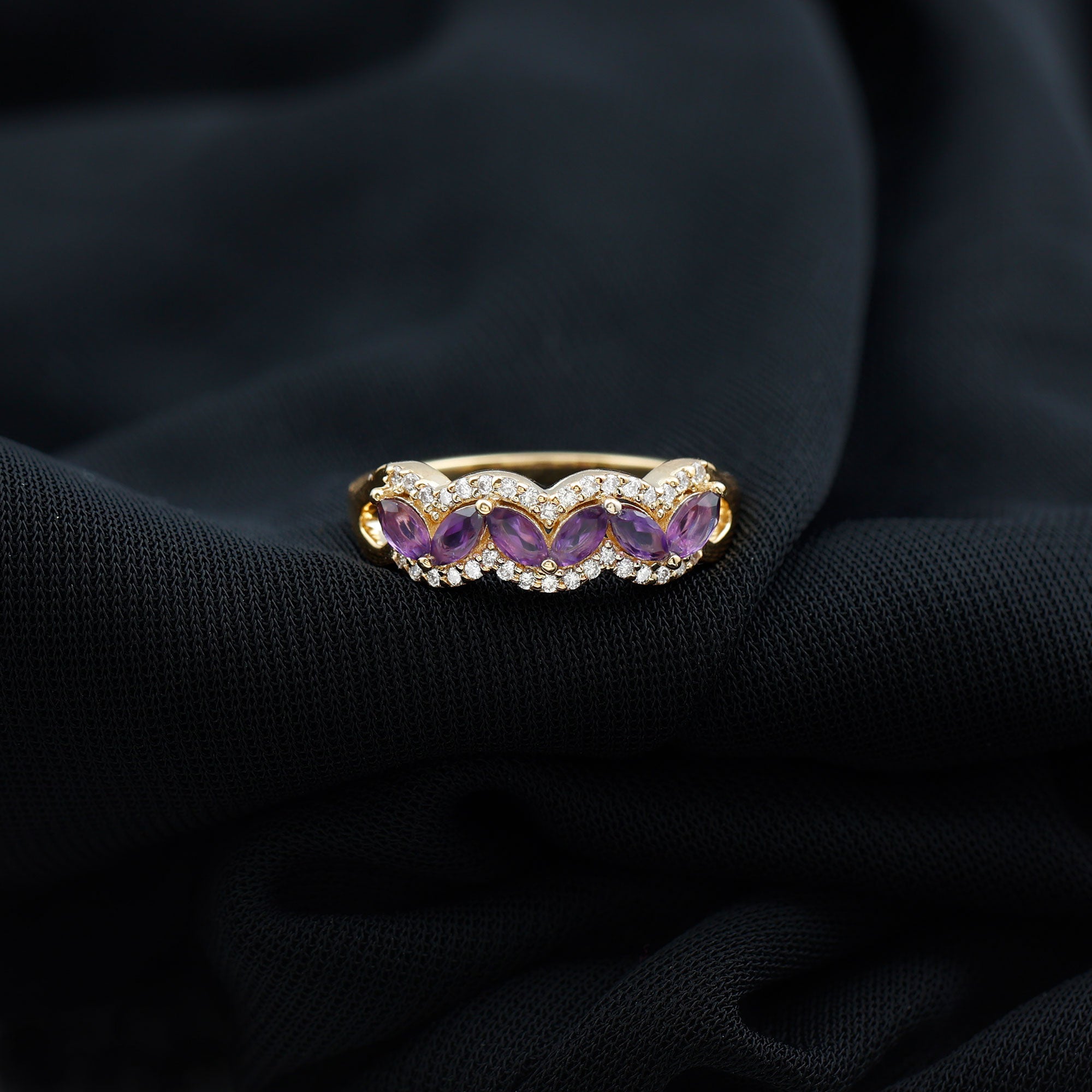 Marquise Shape Amethyst and Diamond Anniversary Band Ring