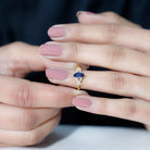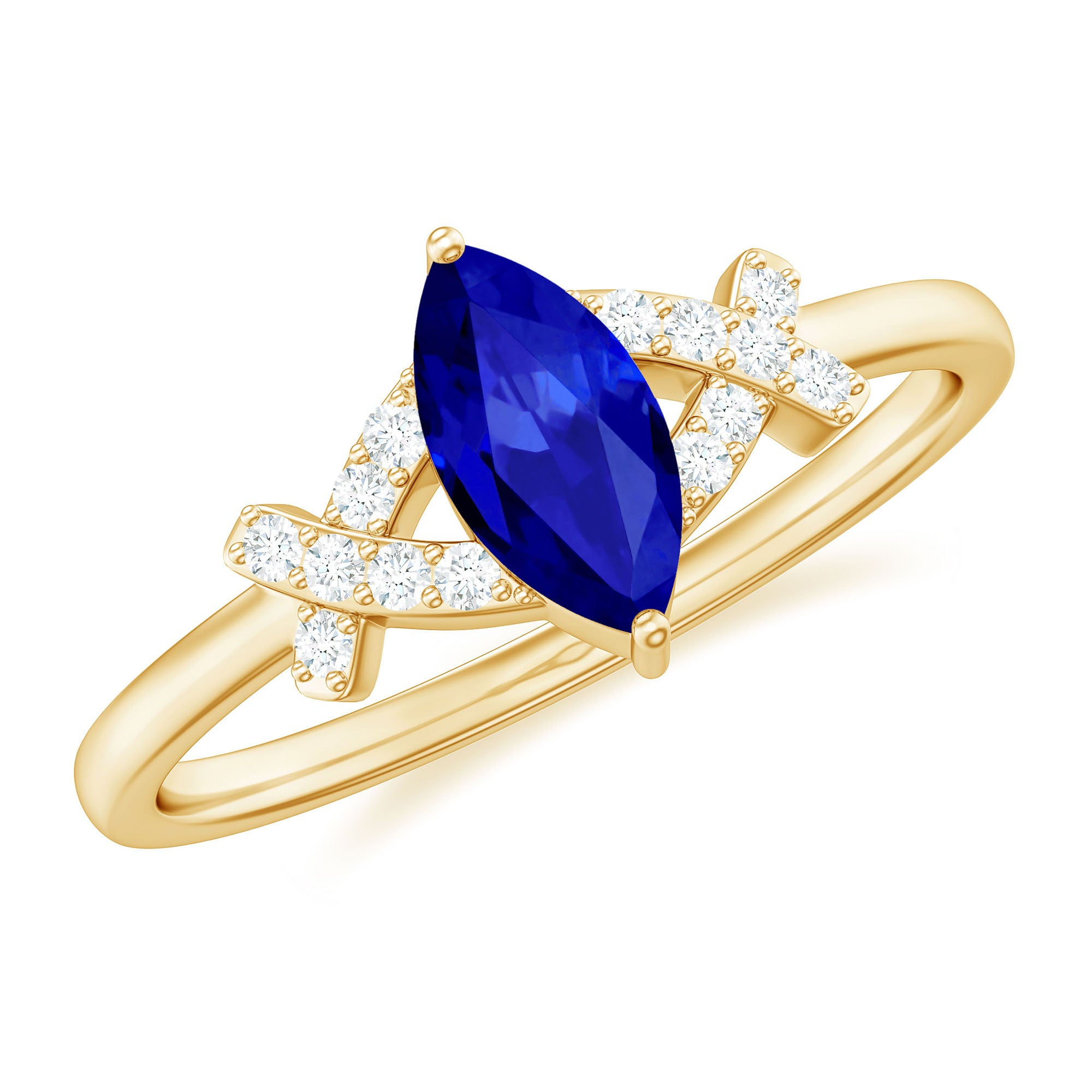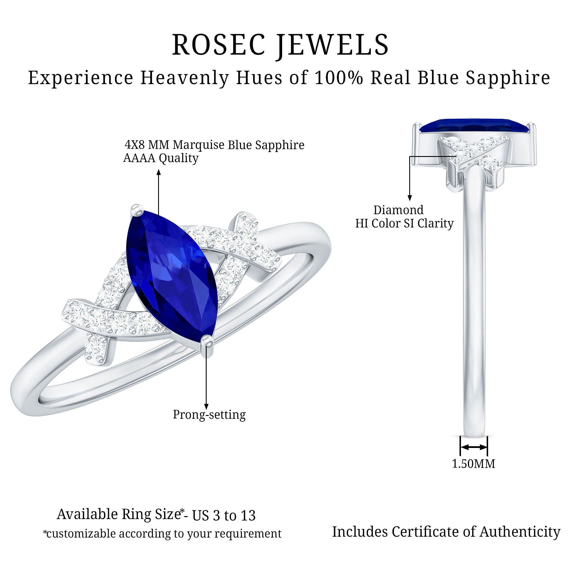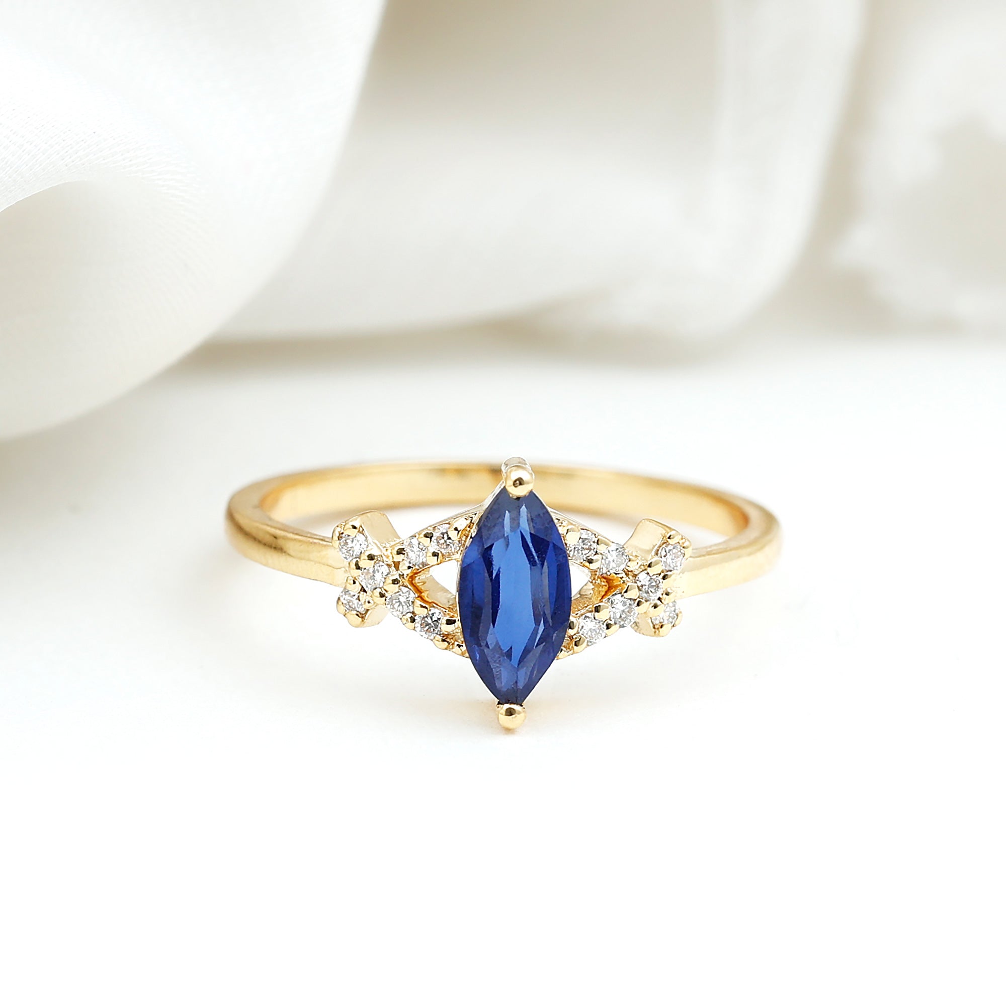 Explore the captivating allure of this Engagement Ring, featuring a marquise-cut created blue sapphire while the dainty diamonds sparkle on the unique shank. This stunning created blue sapphire ring captures the essence of elegance and sophistication, making it an ideal ring for an engagement, or a wedding day. Surprise your better half by gifting our sapphire ring on this wedding anniversary and make her fall for you again.