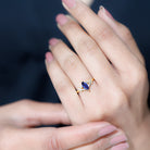 Created Blue Sapphire Minimal Engagement Ring With Diamond