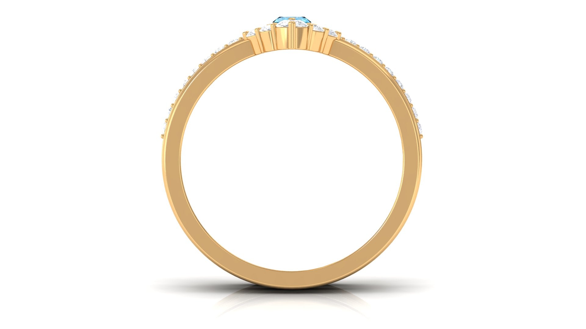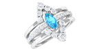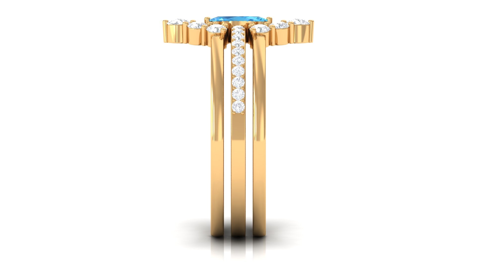 Marquise Shape Swiss Blue Topaz Solitaire Ring Set with Moissanite