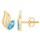 Marquise Shaped Swiss Blue Topaz Leaf Stud Earrings in Silver