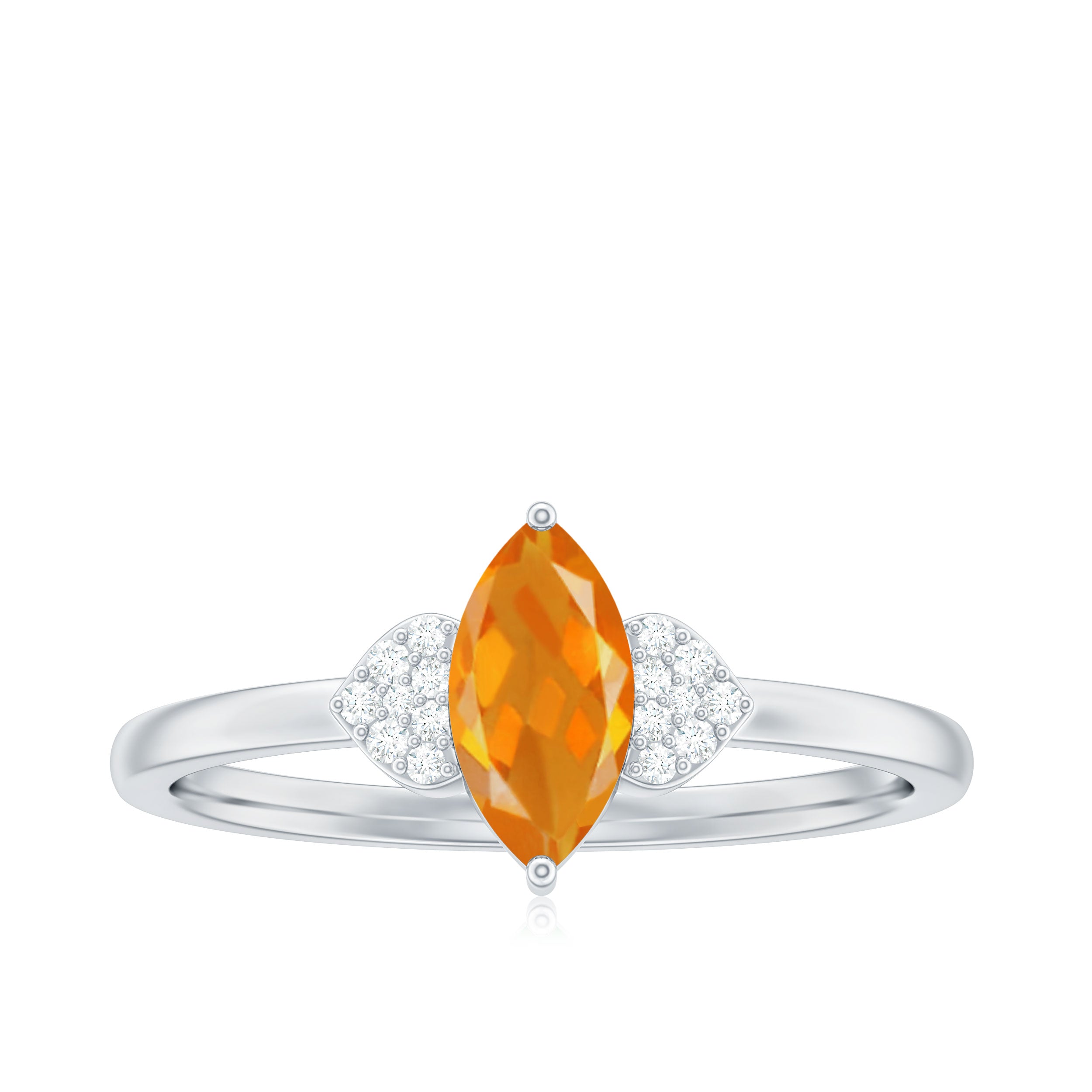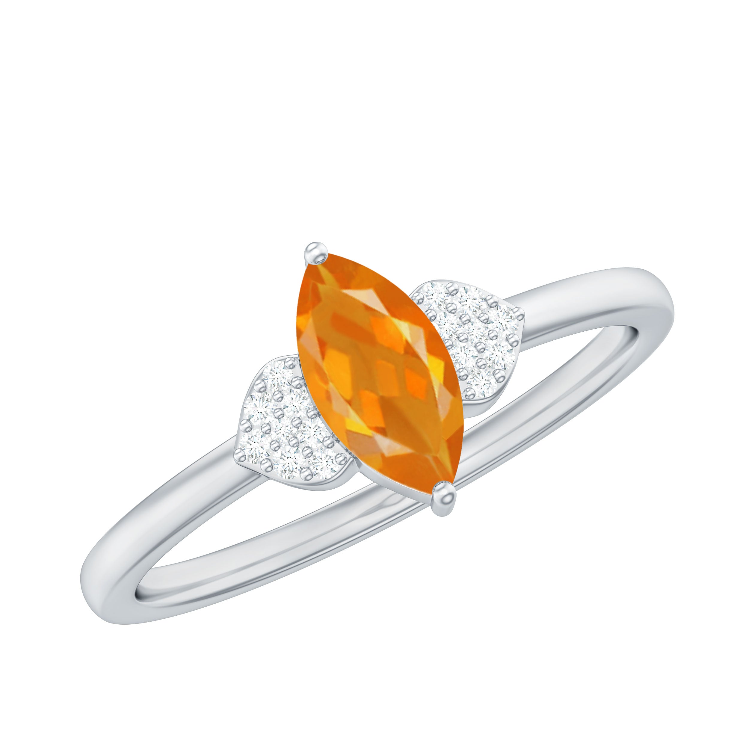 Marquise Solitaire Fire Opal Engagement Ring with Diamond