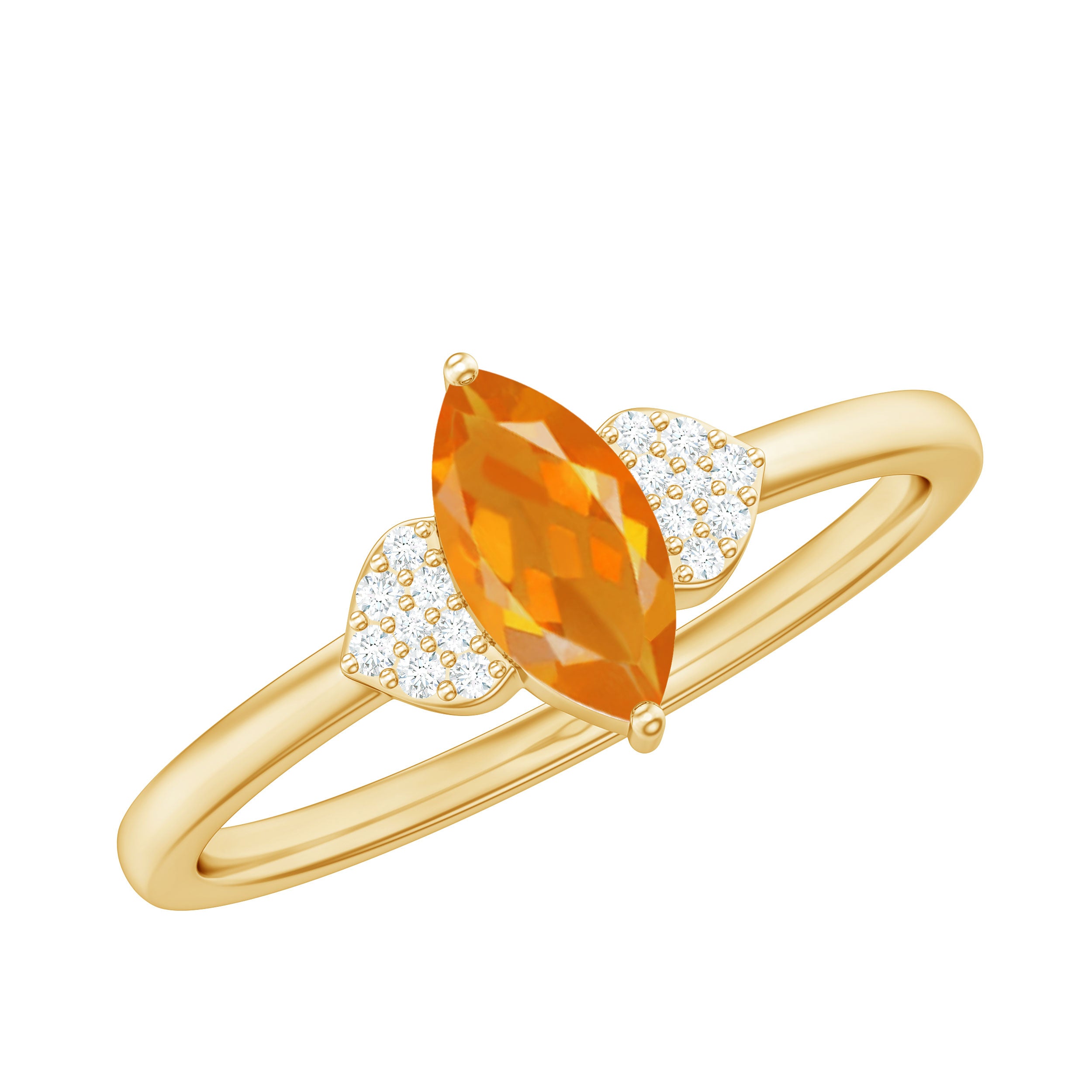 Give a classic appeal to your outfit with this Marquise Engagement Ring. Being embellished with Marquise Cut Fire Opal in the center in a 2-prong setting with Round Diamond Accent on Solitaire Engagement Ring. The stunning look of the Fire Opal Engagement Ring will let her fall in love with it.