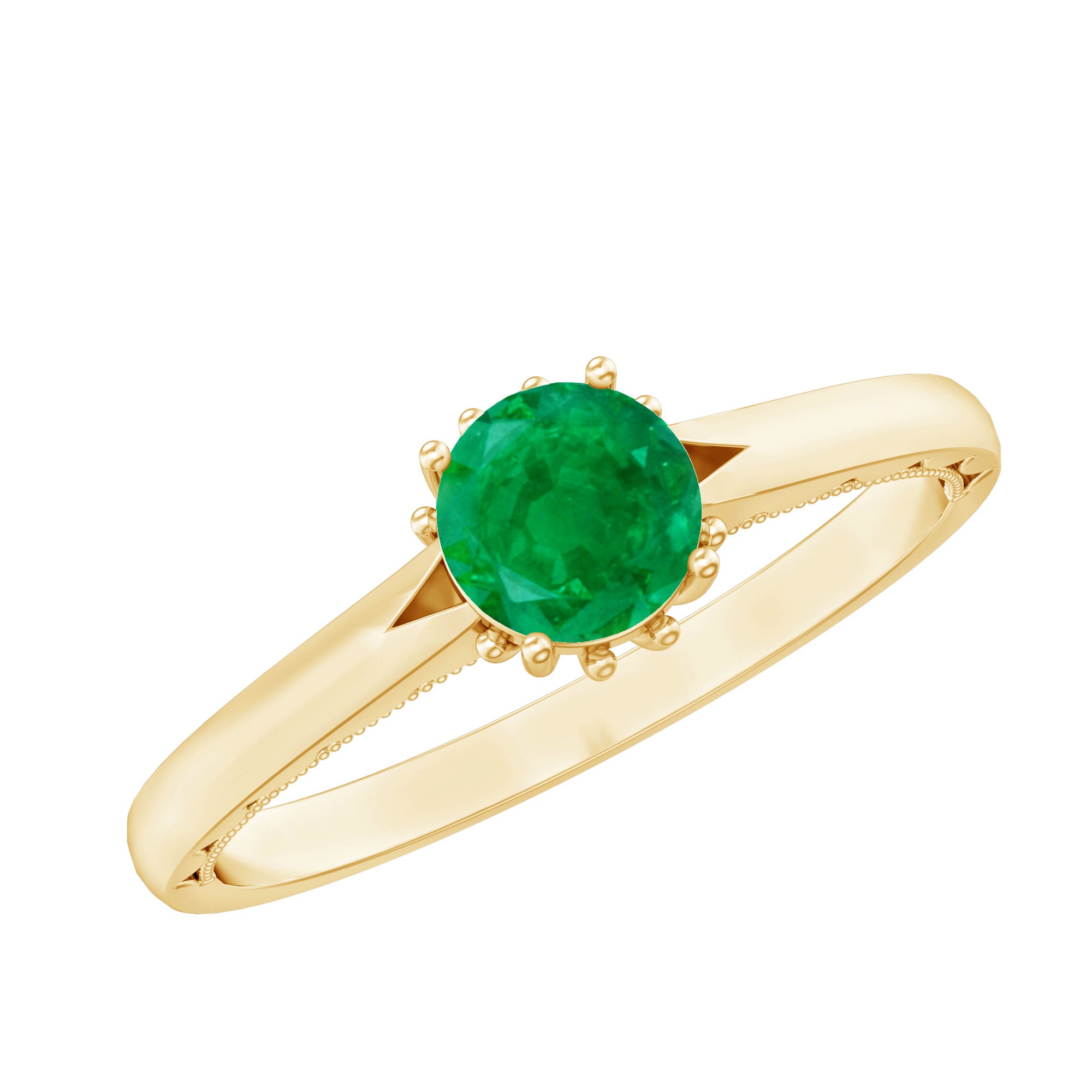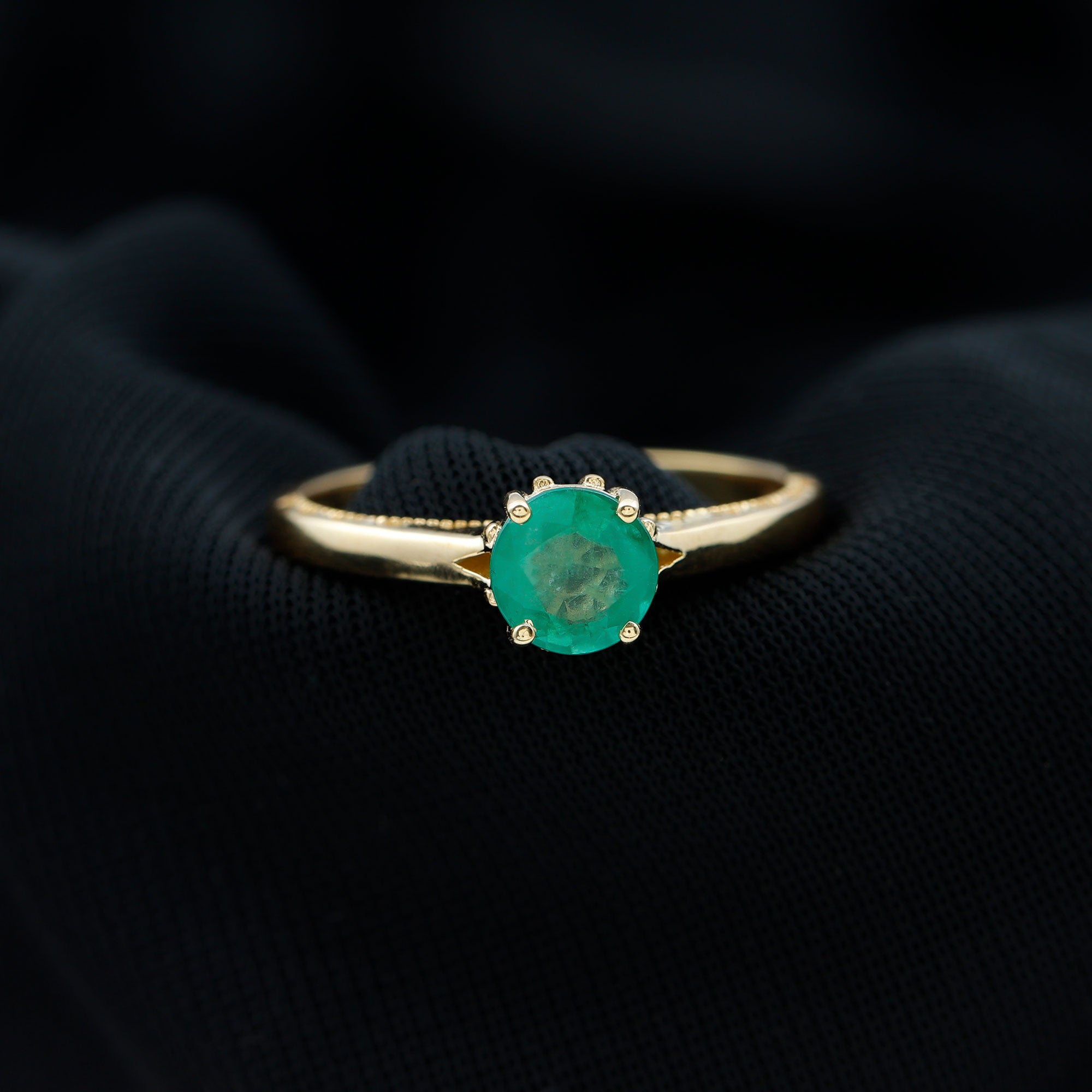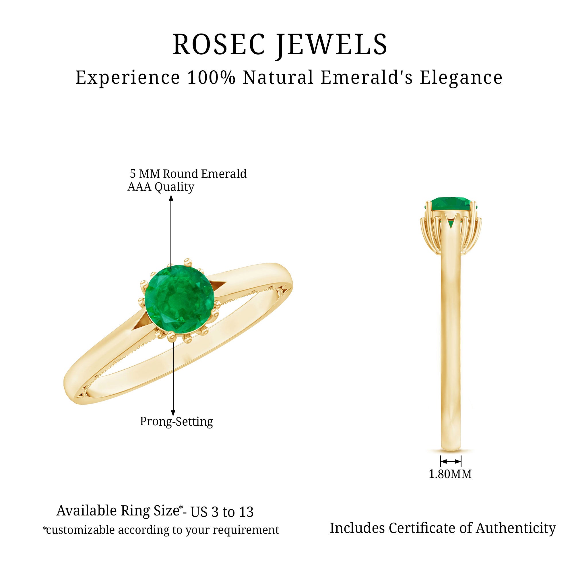May Birthstone 5 MM Emerald Solitaire Ring with Milgrain Detailing