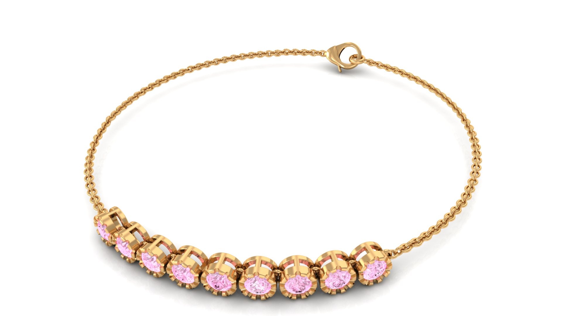 Milgrain Bezel Set Pink Sapphire 9 Stone Chain Bracelet