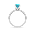 Milgrain Detailed Swiss Blue Topaz Solitaire Ring with Diamond