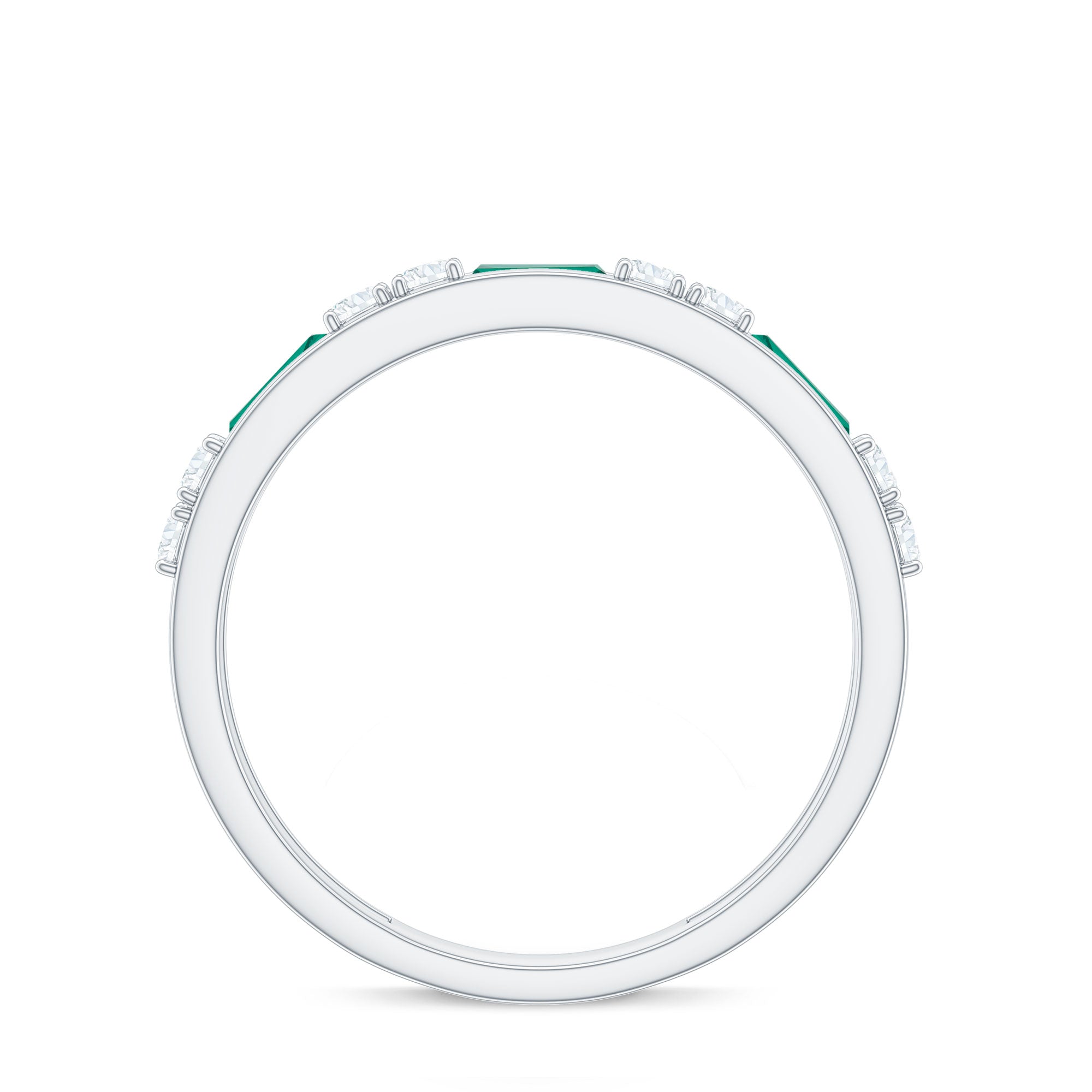 Minimal Baguette Lab Grown Emerald Half Eternity Ring with Diamond