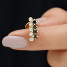 Add some shine to your appearance with this Bar Cartilage Earring featuring Round Cut Black Onyx and Moissanite in Prong and Bezel Setting respectively. Crafted in Gold Metal and can be worn on Cartilage, Helix, and Upper Lobe Piercings. The Flat Back Closure ensures a secure fit. Enhance your overall look with this elegant Piercing Jewelry.