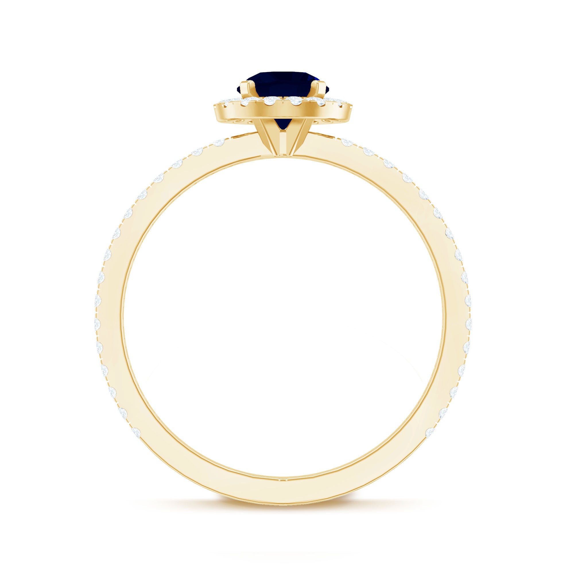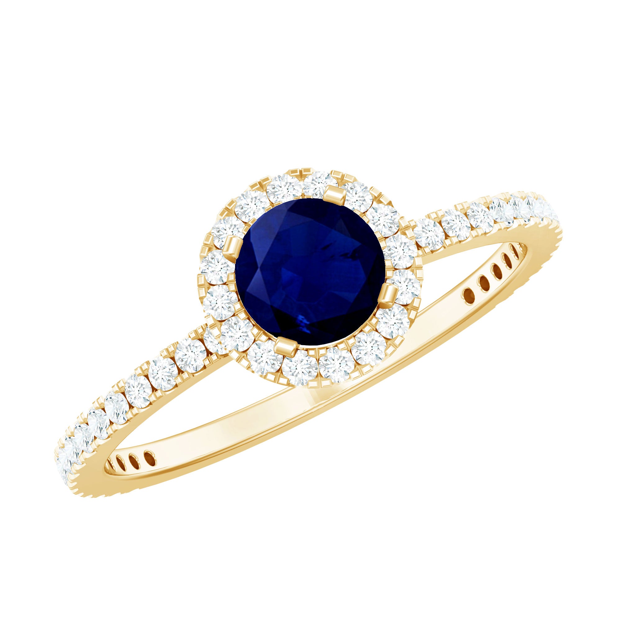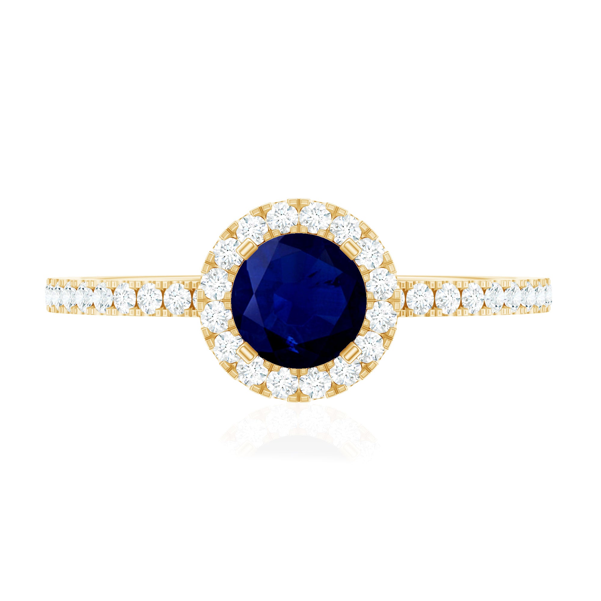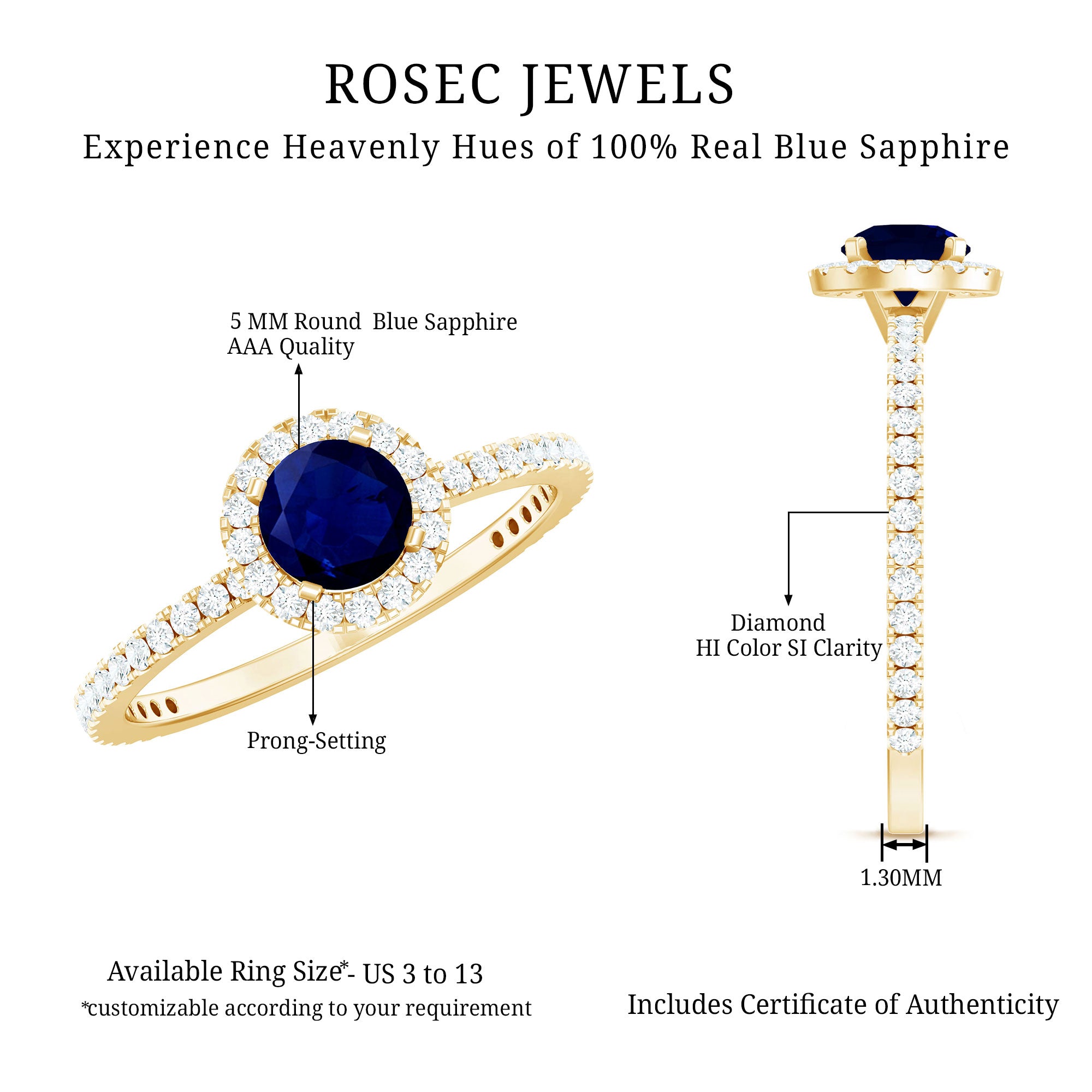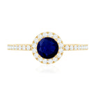 A Unique Engagement Ring is embellished with 5MM Round Shape Blue Sapphire as solitaire and small Diamonds is set in side stone makes a lovely piece. This Vintage Ring is Composed in Solid Gold. Grab this lovely Ring Set and let your lady love you a little more.