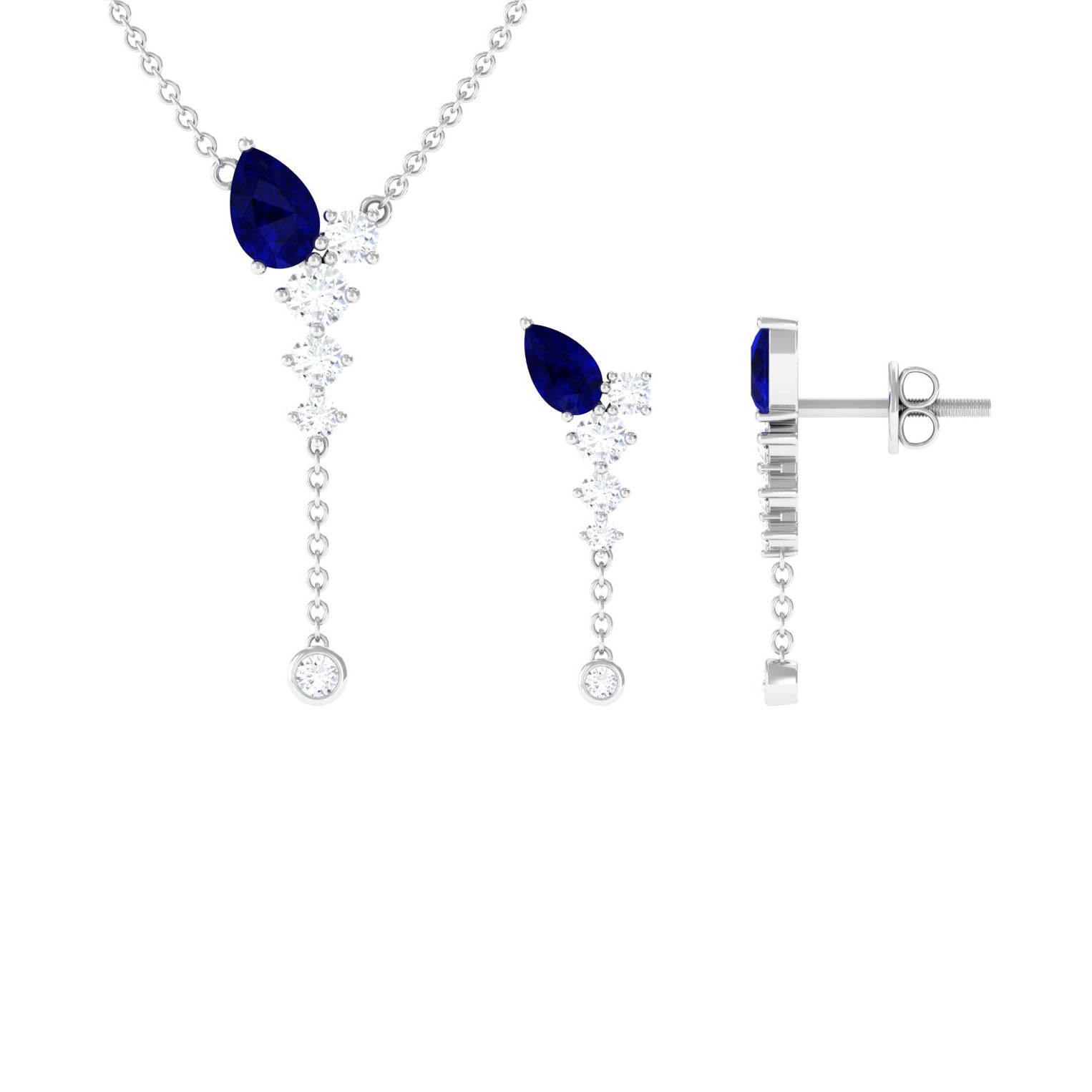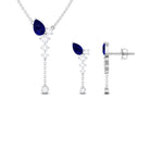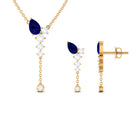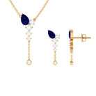 Minimal Blue Sapphire Dangle Necklace and Earrings Set with Diamond