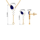 Looking for the perfect minimal jewelry set to elevate your special occasion look? Look no further than this stunning Blue Sapphire Jewelry Set. Featuring a combination of Pear Shape Blue Sapphire and Round Shape Diamond stones, this Y Necklace and Earrings Set is sure to turn heads. The minimalist design of this Dangle Jewelry Set adds a touch of sophistication to any outfit. With a total weight of 2 Carat and AAA quality certification, you can trust that all of the gemstones in this set have undergone rigorous quality checks to ensure their beauty and durability.
