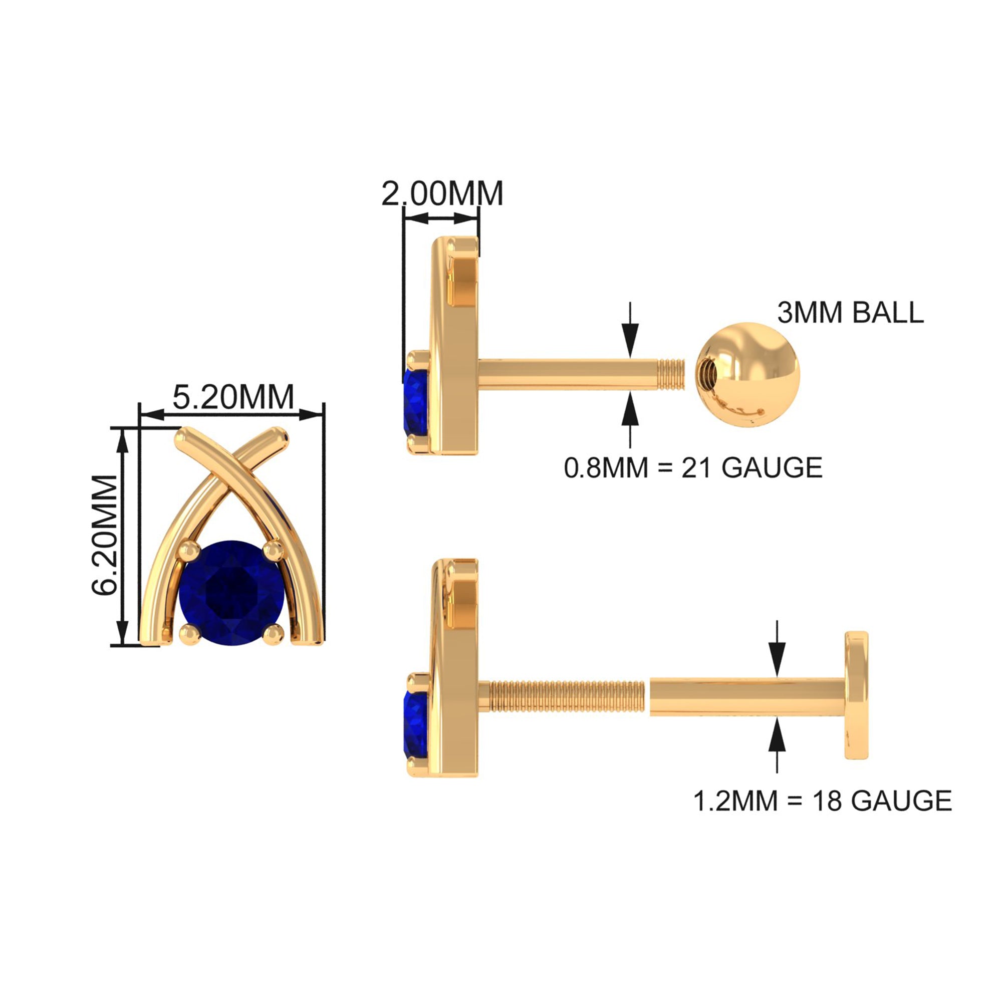 Minimal Blue Sapphire Solitaire Earring for Helix Piercing