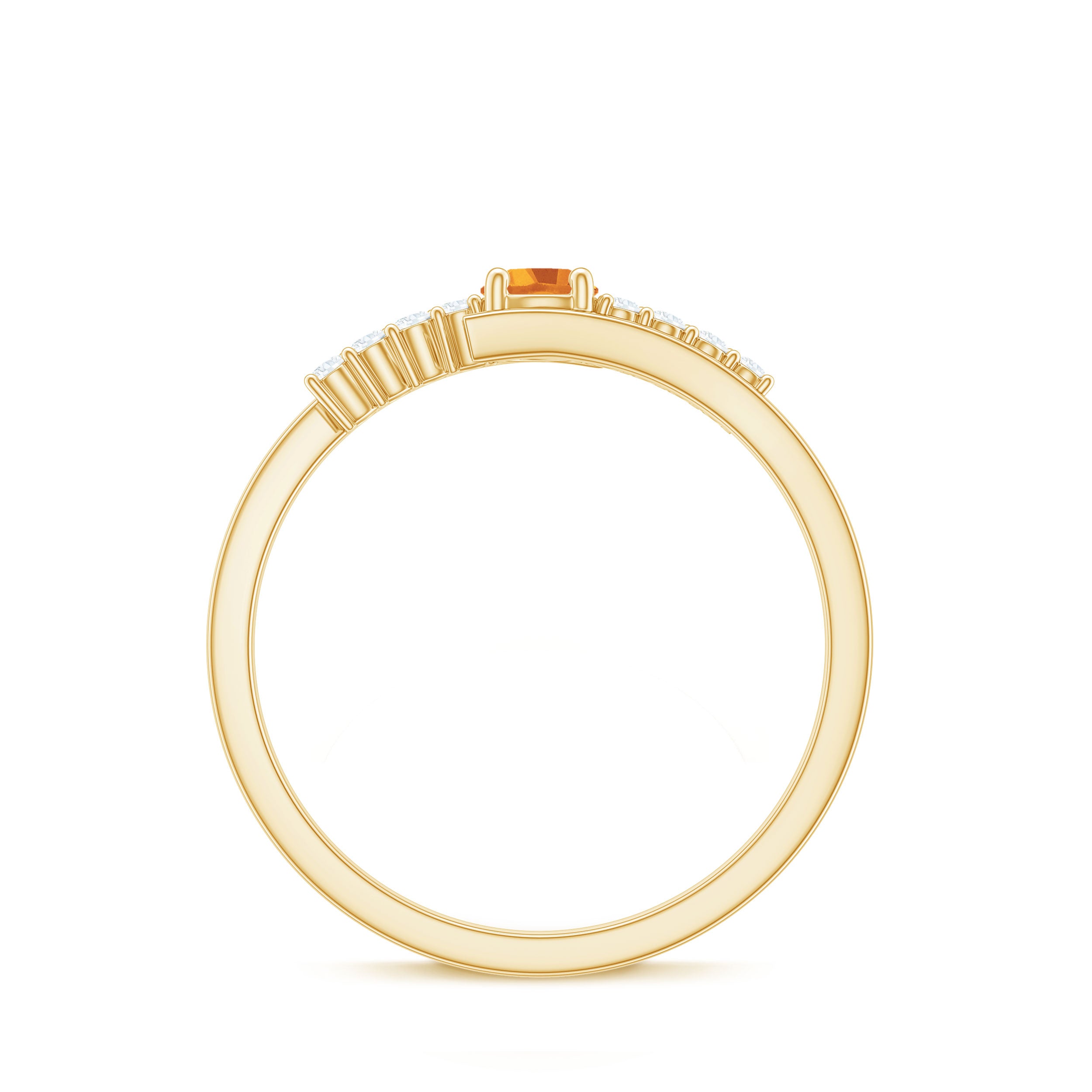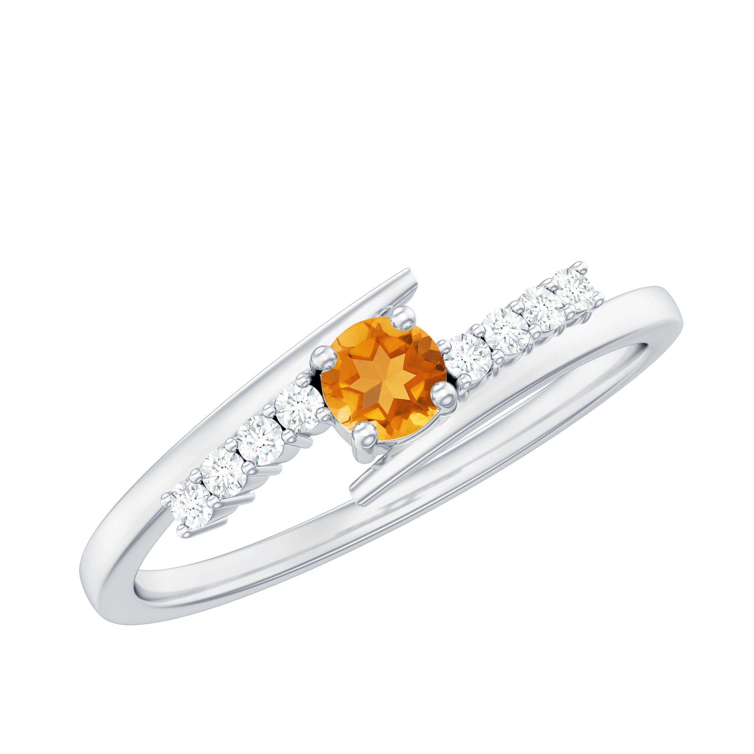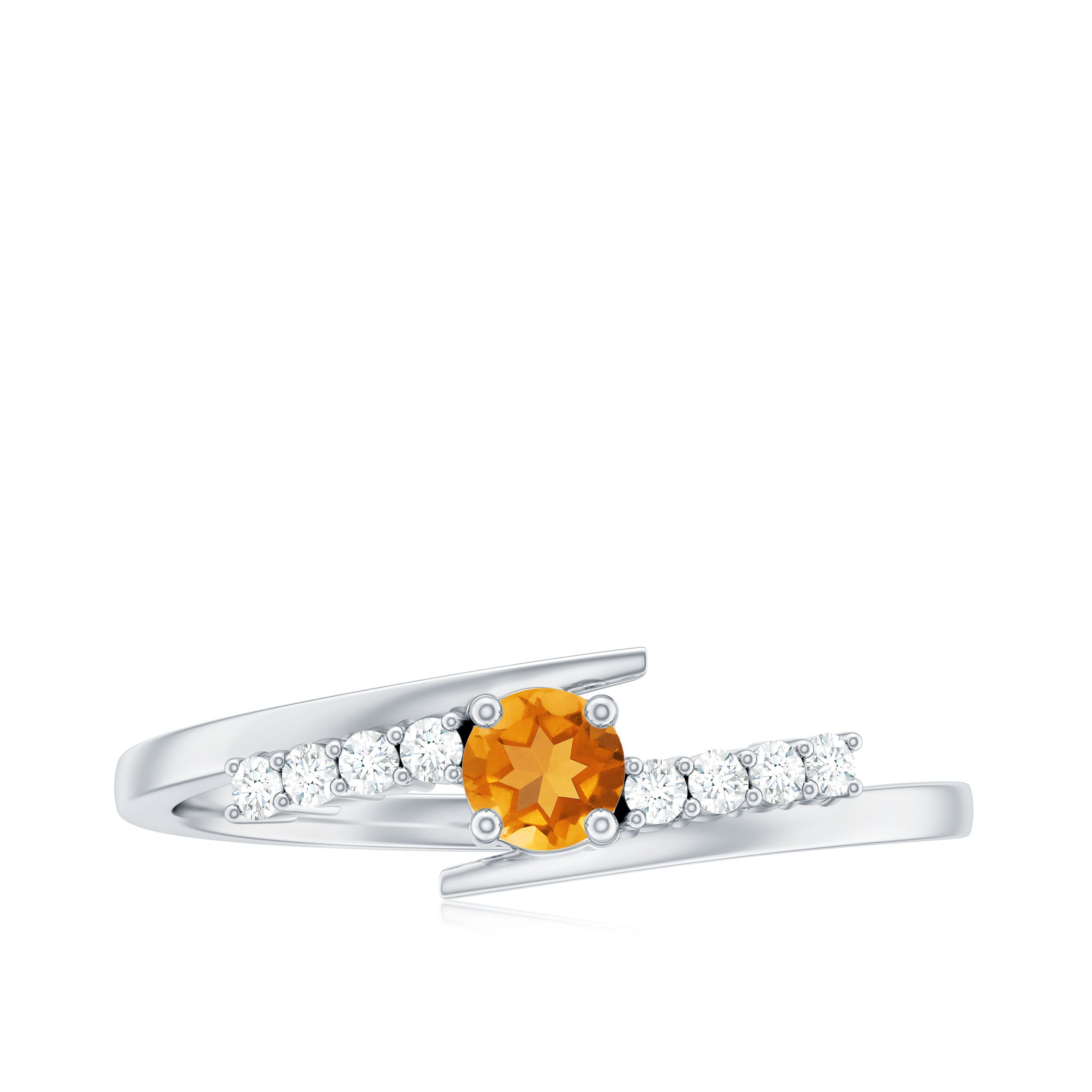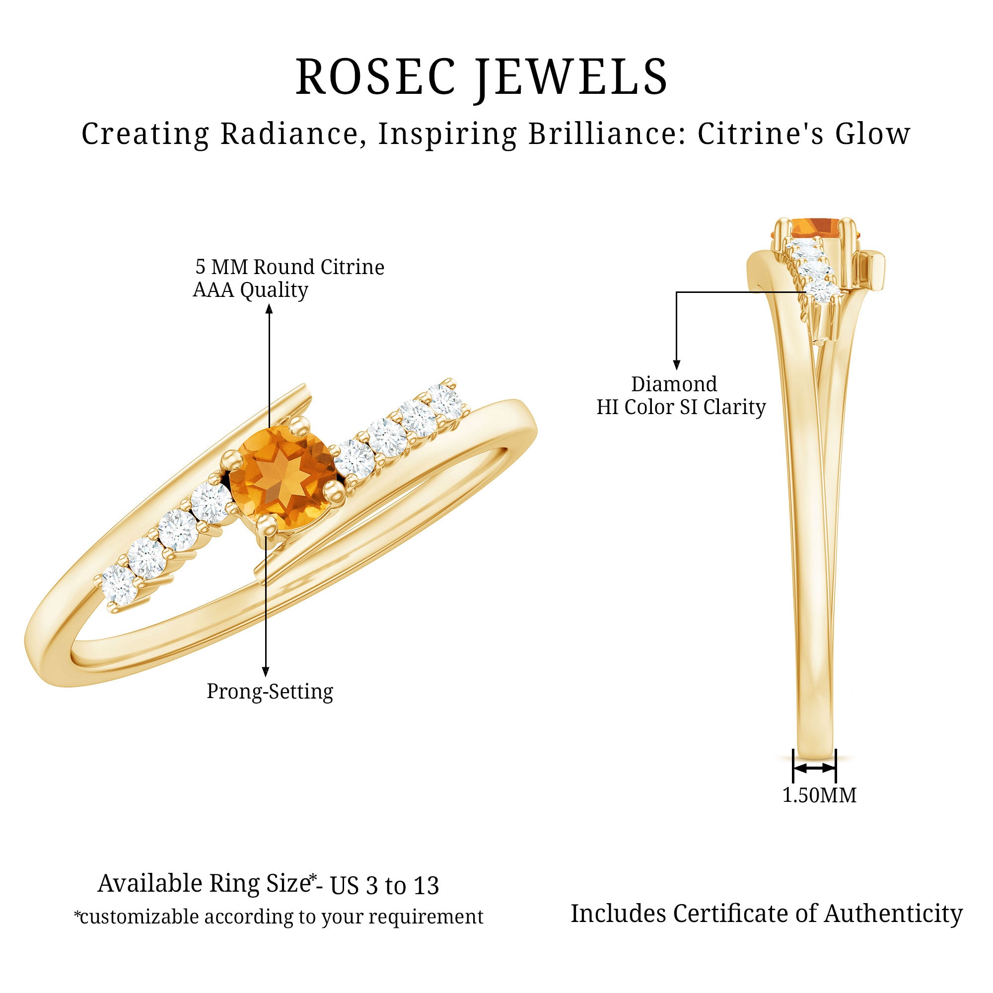 Elevate the glamour of your look with this beautiful Minimal Bypass Ring, featuring a Round Shape Citrine gemstone set as a center stone in a Prong Setting. The ring is further adorned with Diamond accents on the Bypass Shank. This Minimal Promise Ring is the perfect addition to any outfit. Make a lasting impression with this stunning piece.