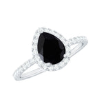 A stunning and timeless Teardrop Engagement Ring with a beautiful design would make a wonderful gift for your significant other. This understated yet elegant engagement ring features a Pear Cut Created Black Diamond at the center, surrounded by a Halo of Round Diamond and Side Stones. The Created Black Diamond Engagement Ring is crafted with Gold Metal for a luxurious finish.