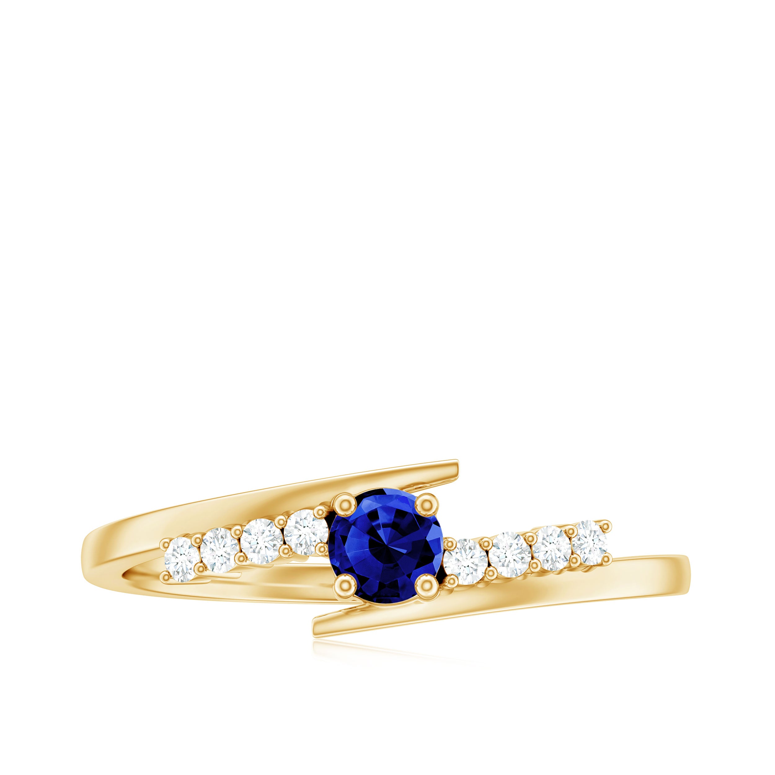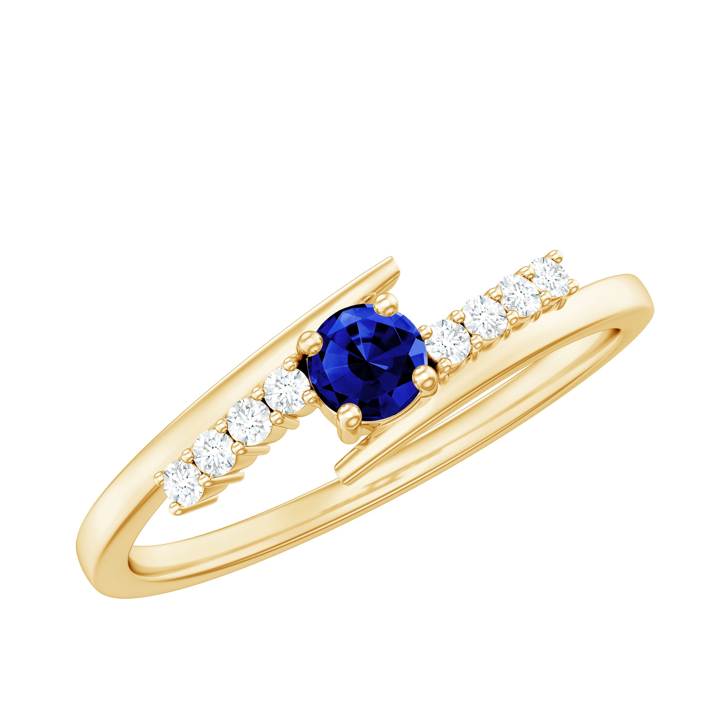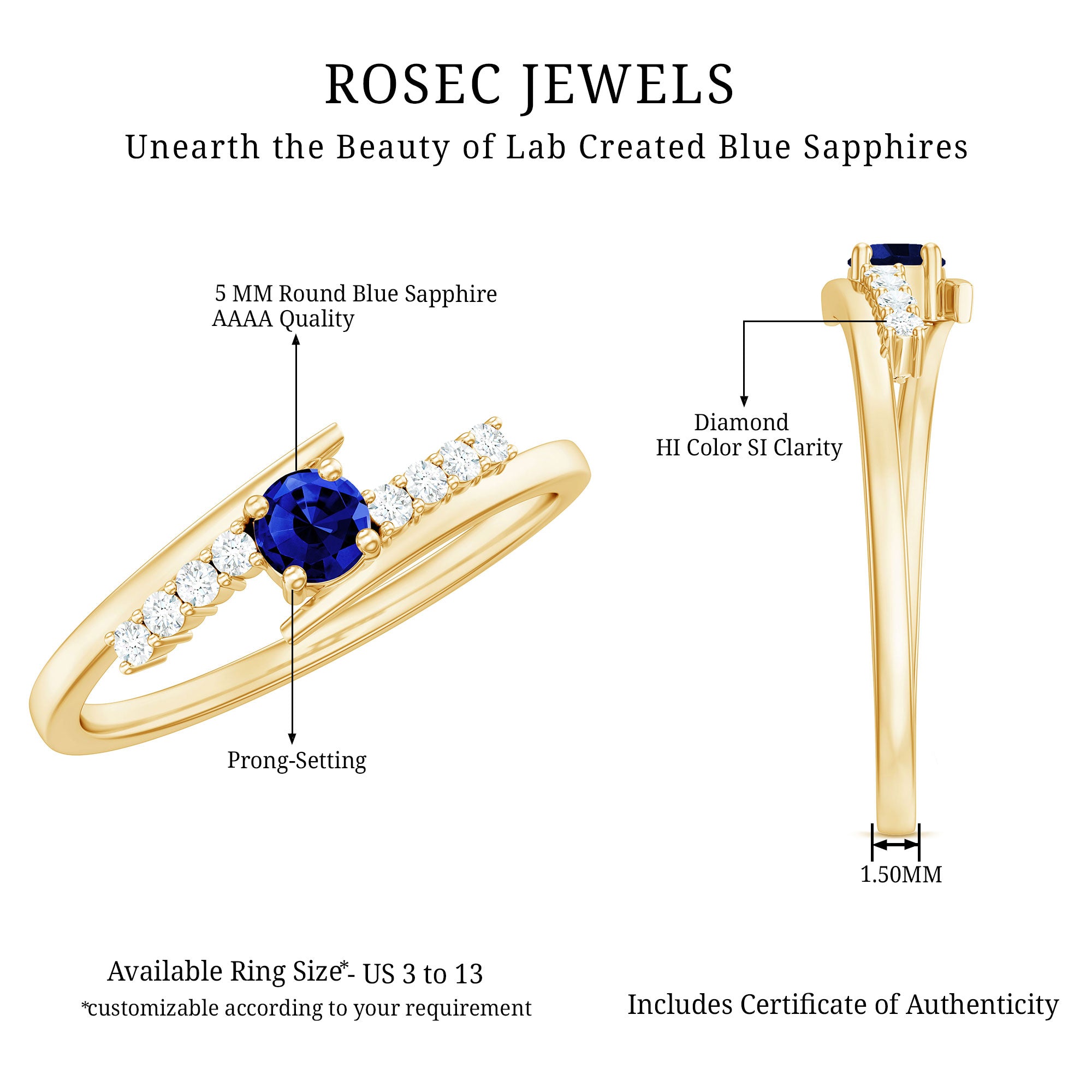 Upgrade your look with this gorgeous Minimal Engagement Ring. A Round Shape Created Blue Sapphire gemstone sits at the center in a Prong Setting, surrounded by a Diamond Bypass Shank for added sparkle. This Engagement Ring is sure to make a statement with its simple yet elegant design.