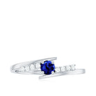 Minimal Created Blue Sapphire and Diamond Bypass Promise Ring