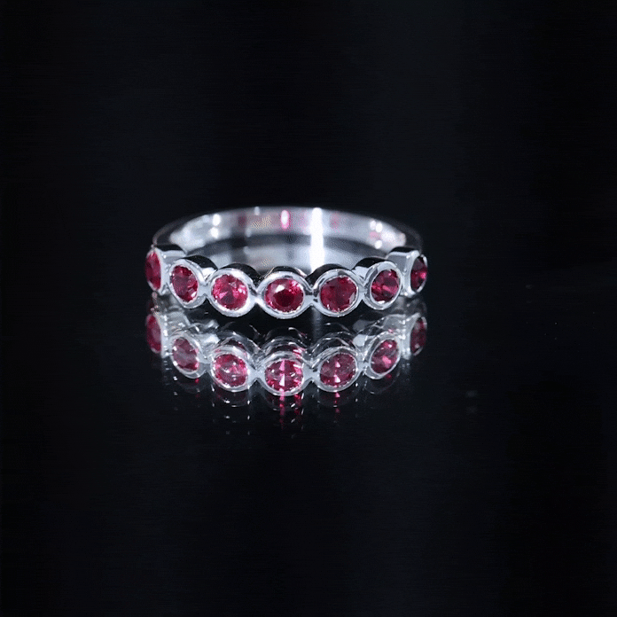 Minimal Created Ruby Half Eternity Ring in Bezel Setting