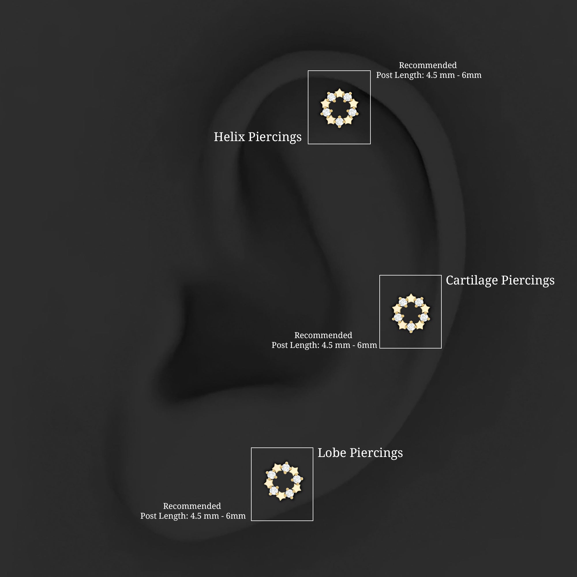 Check out the Diamond Open Circle Earring – a showstopper with Round Shape Diamonds in a dazzling Prong Setting, making it an absolute eye-catcher in the world of diamond bling.This Minimalist Earring isnt just for one spot – rock it on your Helix, Cartilage, Conch, Tragus, or Upper Lobe Piercing. The Flat Back Closure stays right where it belongs.Meet the Eternity Earring – a total game-changer that effortlessly amps up your casual or party vibe. Its a style statement that takes you from your morning coffee run to a late-night bite, keeping you on point with the geometric trend.