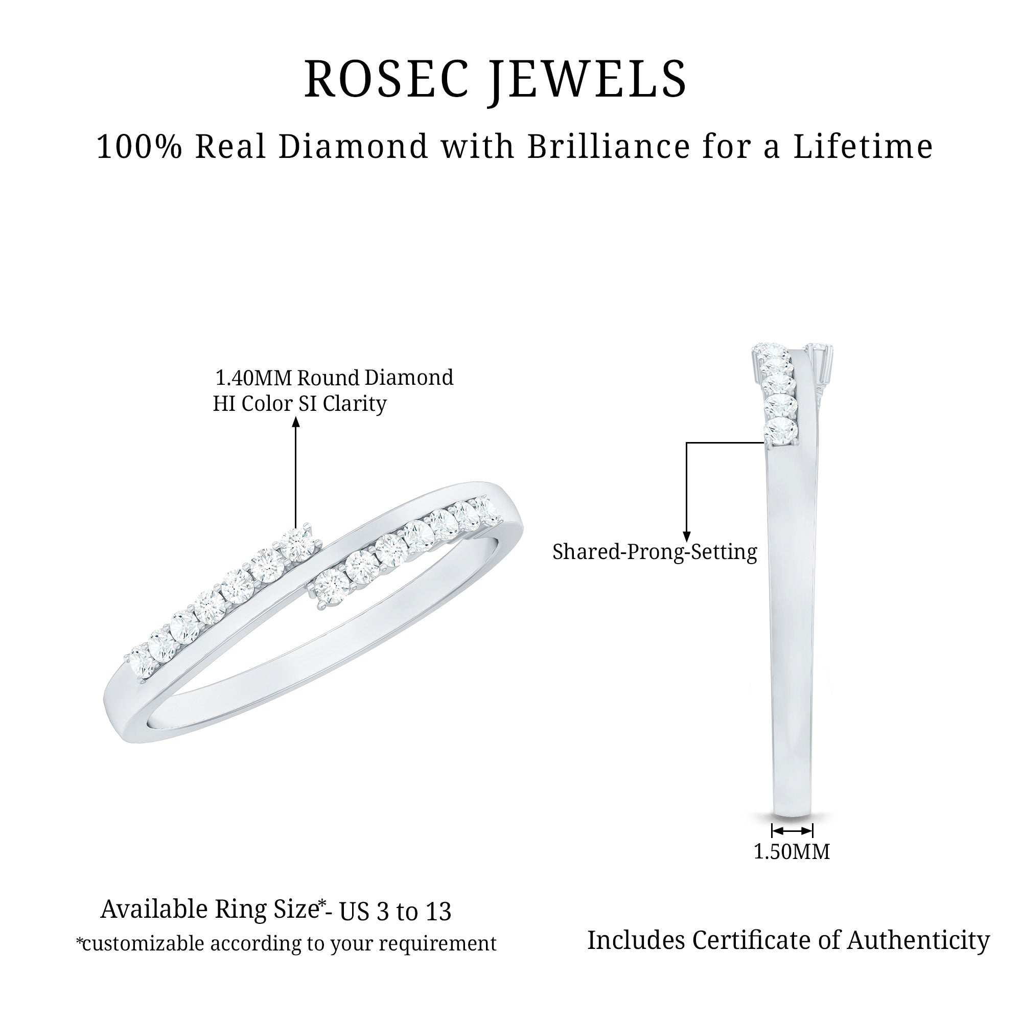 Make a Statement with this Minimal Stackable Ring featuring round shape Diamonds set in Prong Setting. This band ring can be stacked with one of your favorite ring.