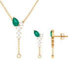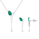 Minimal Emerald Dangle Necklace and Earrings Set with Diamond