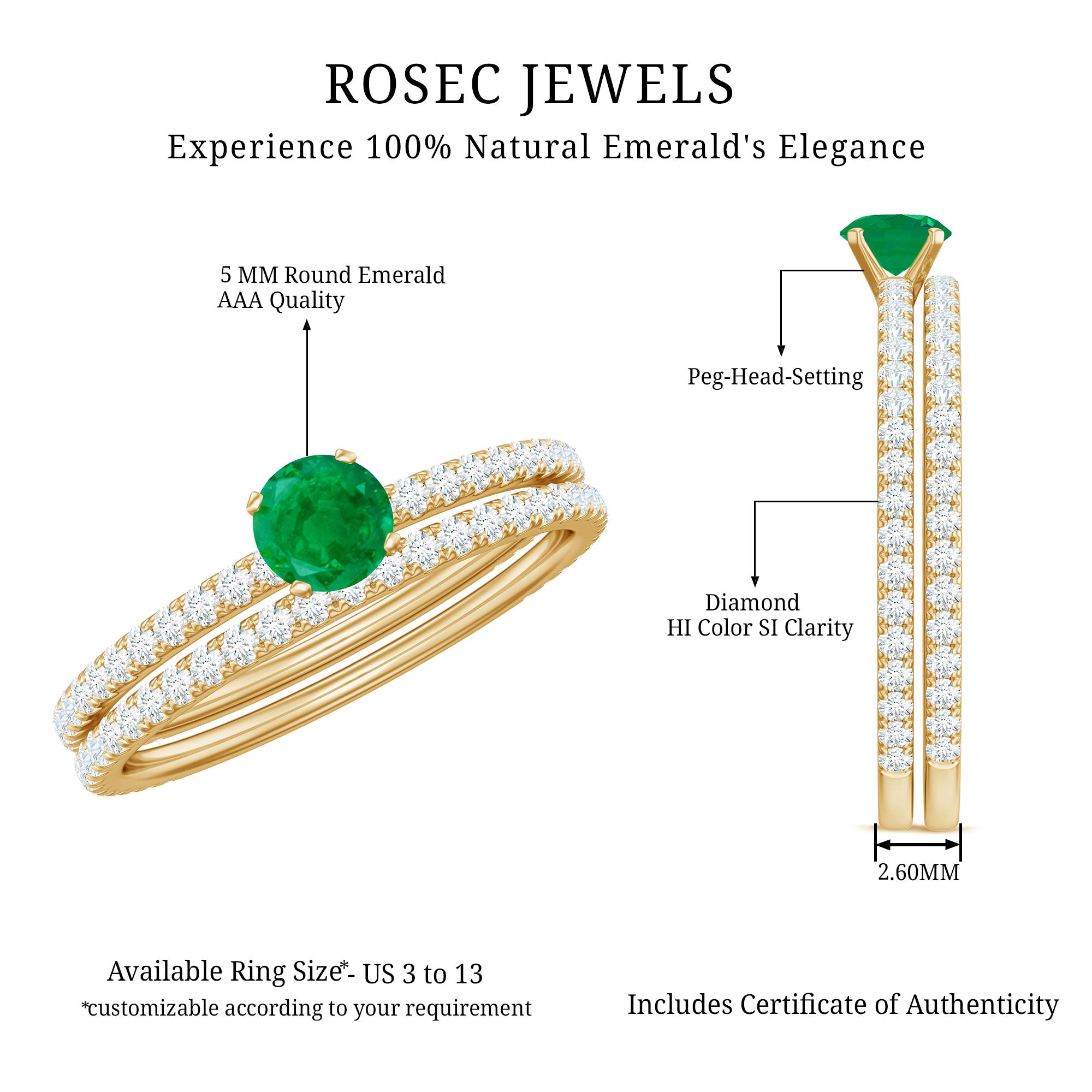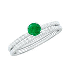 Promise forever with a touch of effortless elegance with this enchanting Promise Ring Set, designed to capture love in its purest form. The Minimal 5 mm Round Emerald Engagement Ring, with its vibrant green hue, is gracefully accented by sparkling Diamond Side Stones that add just the right touch of brilliance. Complementing it is a delicate Diamond Enhancer Ring, perfectly crafted to embrace the engagement ring, creating a seamless and radiant harmony. Together, this Emerald Engagement Ring with Enhancer forms a breathtaking duo that symbolizes unity, devotion and the intertwining of two hearts on the same journey. Minimal yet undeniably captivating, this Emerald Wedding Ring Set reflects modern sophistication while keeping timeless romance at its core. Whether worn together or separately, each ring tells a story of love, promise and shared dreams. Presented in a signature jewelry box and available in a range of ring sizes, this Engagement Wedding Ring Set makes the perfect token for a meaningful promise or a cherished milestone.